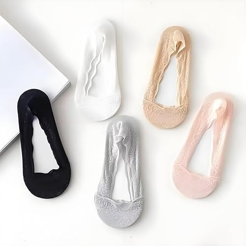 HOT ! Pleteffect Socks, Lace No Show Liner Sock, 5 Pairs Lace Low Cut Liner Boat