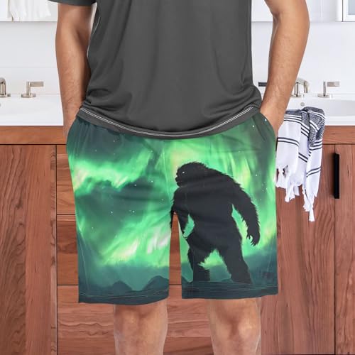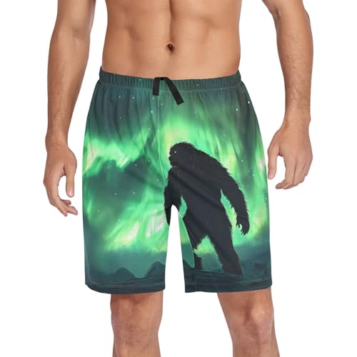 HOT ! Aurora Sasquatch Men's Sleep Shorts Pajama Pants with Side Pockets Elastic Waistband Drawstring S