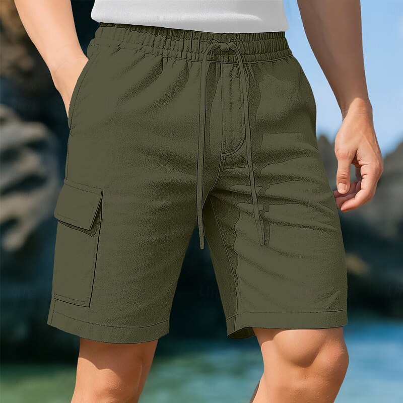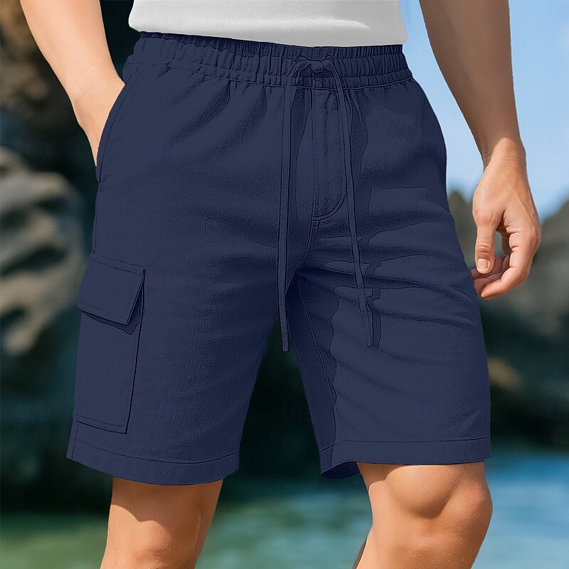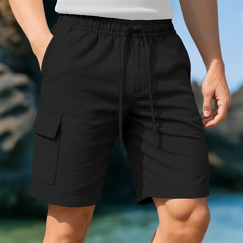 $22.99 - Men's Cargo Shorts Shorts Linen Shorts Summer Shorts Beach Shorts Drawstring Elastic Waist Multi Pocket Plain Knee Length Outdoor Casual Daily Vacation Hawaiian Black White Micro-elastic 2025. Shop for cheap Holiday online? Buy at lightinthebox.com on sale today!