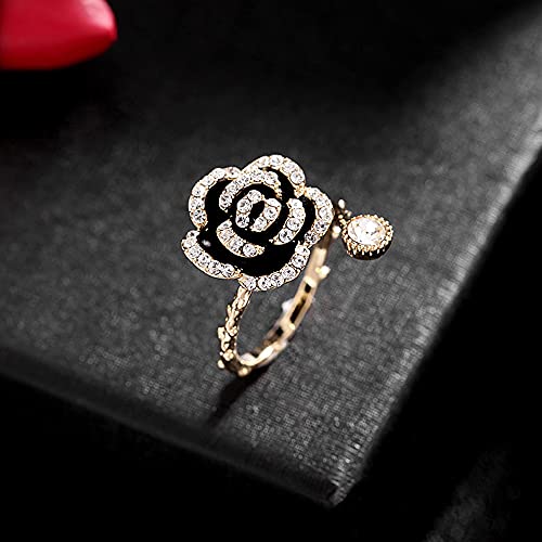 Vivid Black Rose Flower Open Statement Rings for Women CZ Crystal Blooming Wrap Finger Band Engagement Wedding Stacking Ring 6