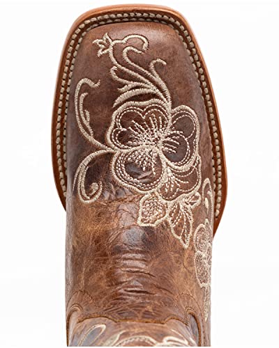Shyanne Women's Lasy Floral Embroidered Western Boot Broad Square Toe Brown 10 M US 5