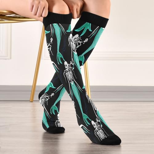 HOT ! STAYTOP Halloween Skeleton Mermaid Compression Socks for Women & Men (2 pairs)-Support Knee High Socks for Running, Sports