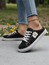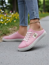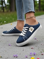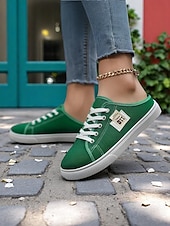 More information about Women's Green Canvas Slip-On Sneakers with Lace-Up Design – Comfortable Backless Trainers, Ideal for Walking, Shopping, School Runs & Casual Summer Days