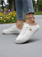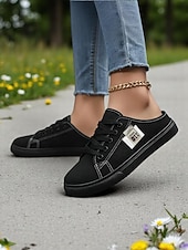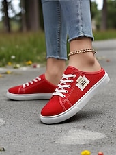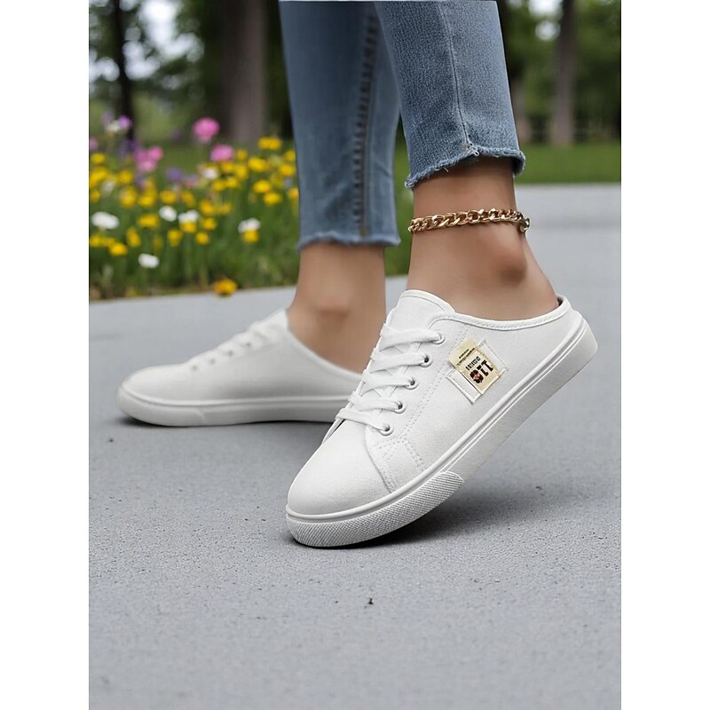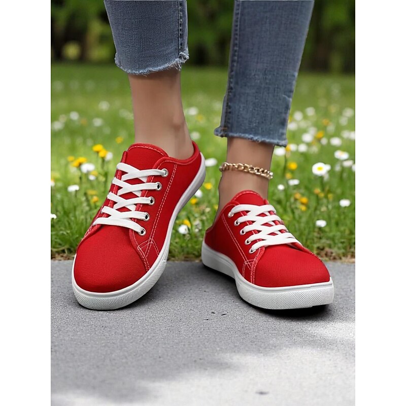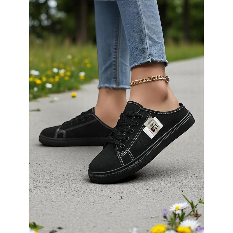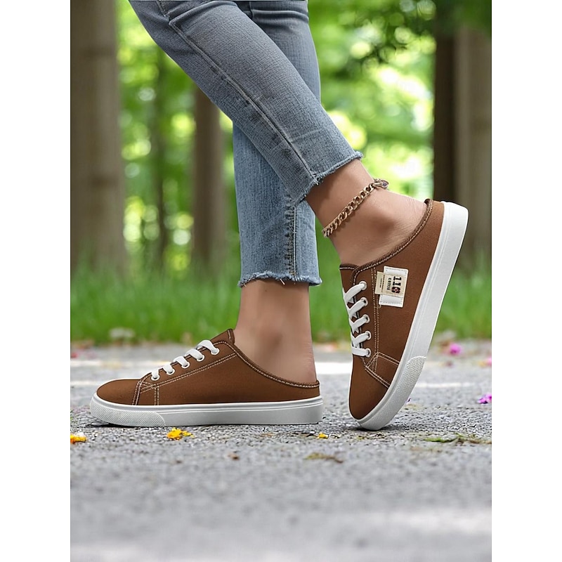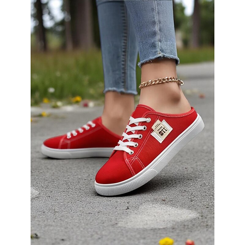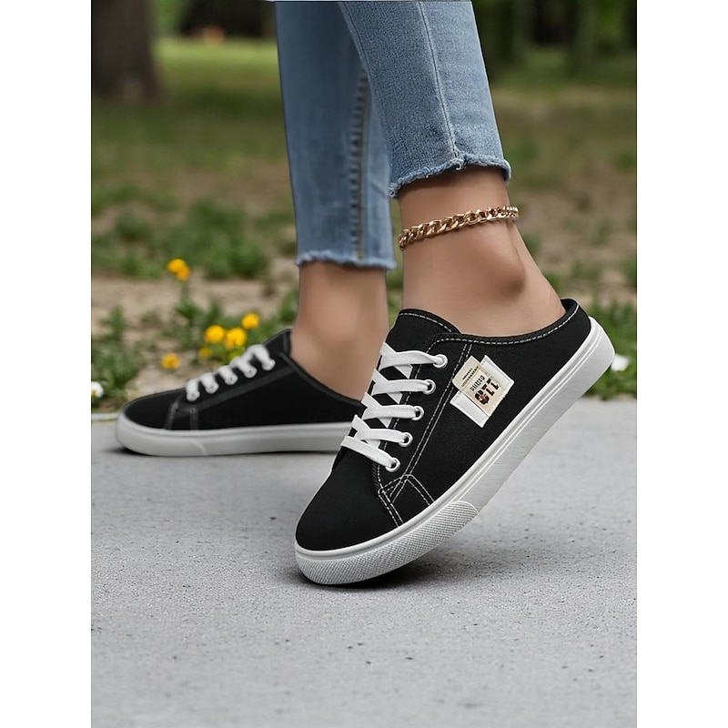 HOT ! Women's Green Canvas Slip-On Sneakers with Lace-Up Design – Comfortable Backless Trainers, Ideal for Walking, Shopping, School Runs & Casual Summer Days