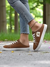 Women's Green Canvas Slip-On Sneakers with Lace-Up Design – Comfortable Backless Trainers, Ideal for Walking, Shopping, School Runs & Casual Summer Days 21