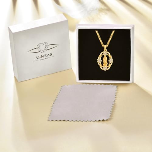 AENEAS Virgin Mary Necklace Miraculous Medal Women Medalla de la Virgen Milagrosa Virgen de Guadalupe Gift Jewelry for Birthday Christmas 2