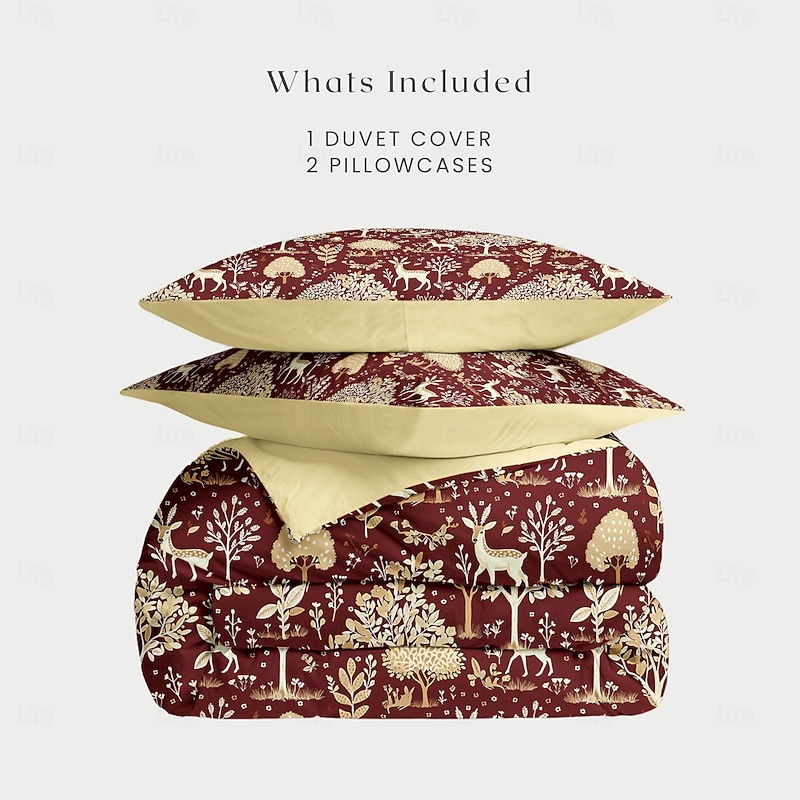 More information about 100% Cotton Duvet Cover Set Tree Pattern Set Soft 3-Piece Luxury Bedding Set Home Decor Gift King Queen Duvet Cover