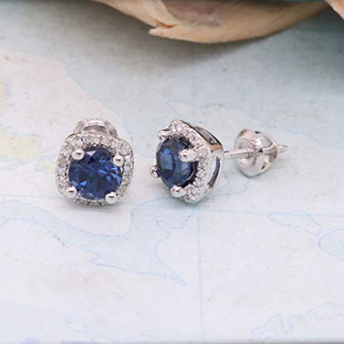 More information about Dazzlingrock Collection 5mm Each Round Lab Created Gemstone & White Diamond Womens Halo Stud Earrings, 10K Solid White Gold