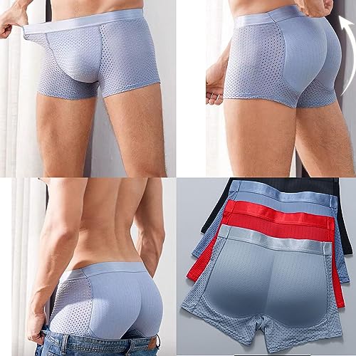 HOT ! FETNHU Nylon Ice Silk Breathable Men's Underwear, Men Seamless Hip Lifter Shape Panties Nylon Padded Boxer (4PCS,XL)