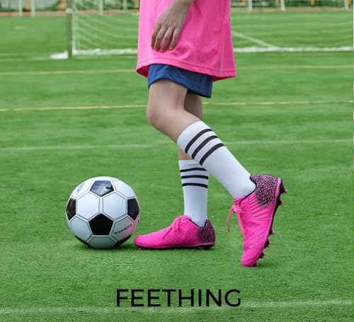 Women Soccer Cleats Firm Ground Lace-Up Youth Soccer Shoes Light-Weight Outdoor Training Football Sneakers Big Kid 4