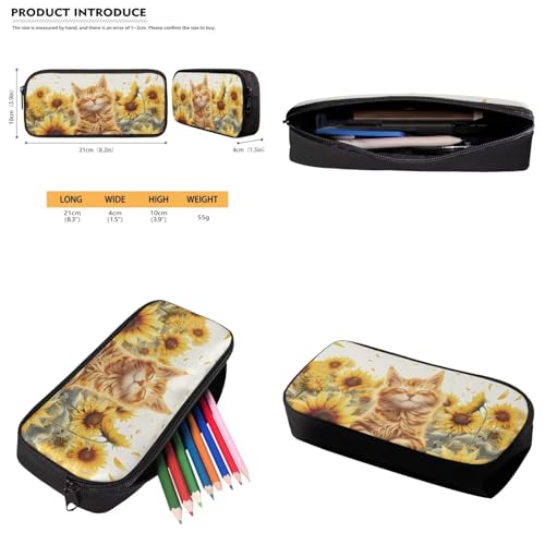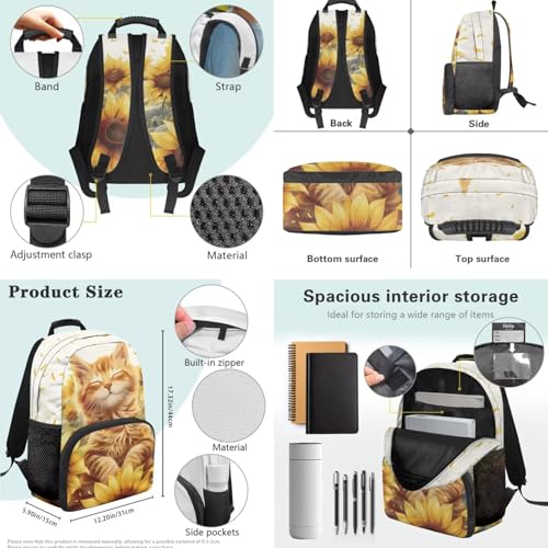 HUGS IDEA Sunflower Orange Cat Backpack for Girls 4-6 with Lunchbox Cute Cat School Bags for Toddler Girls 3 Packs Backpack with Lunch Box Bag Pencil Case Kids Outdoor Sports Travle Bag 7