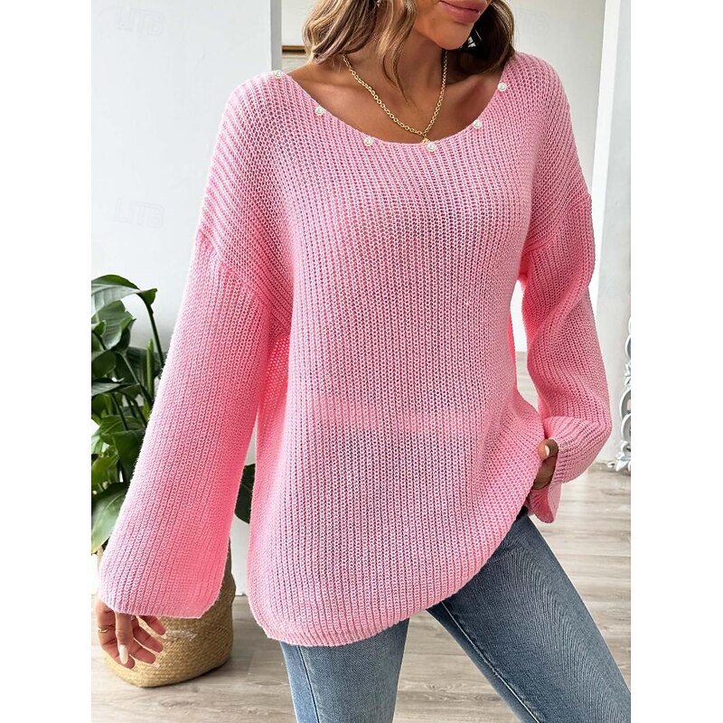 HOT ! Women's Sweater Crew Neck Knit Sequins Spring Fall Party Elegant Daily Long Sleeve Solid Color Pink