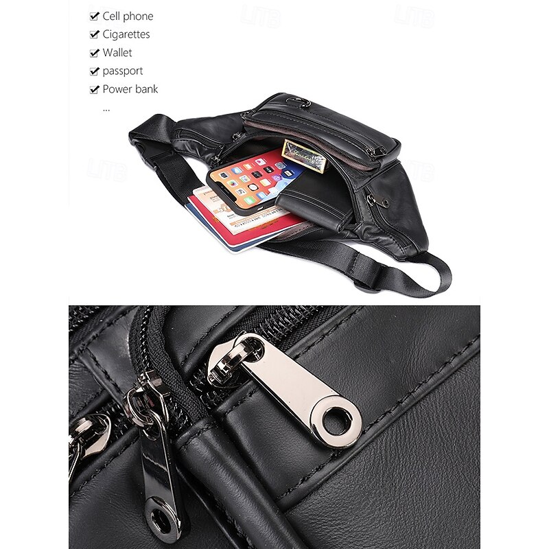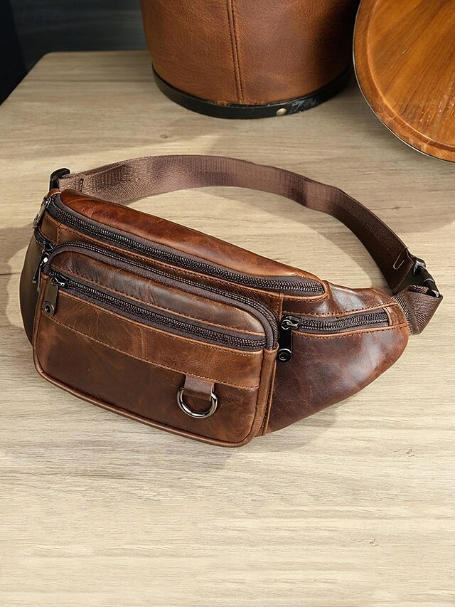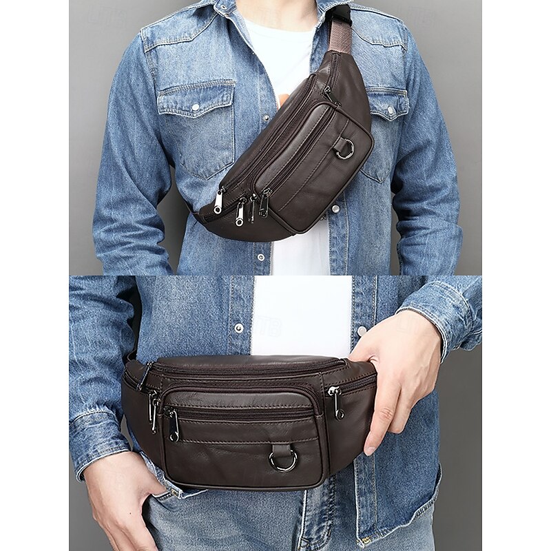 $37.93 - Men's Vintage Leather Sling Bag Fanny pack– Crossbody Chest Pack with Multiple Zipper Pockets, Adjustable Strap, Stylish Travel & Everyday Waist Bag Black Brown 2025. Shop for cheap Men's Bags online? Buy at lightinthebox.com on sale today!