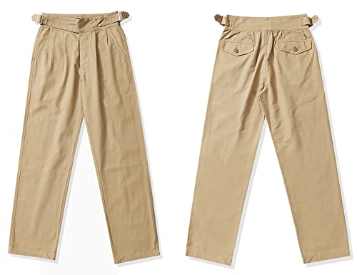 Snoly Men's Cotton Retro Tapered Leg Flat Front Chino Pant Straight Western Gurkha Pants 4