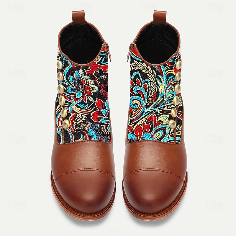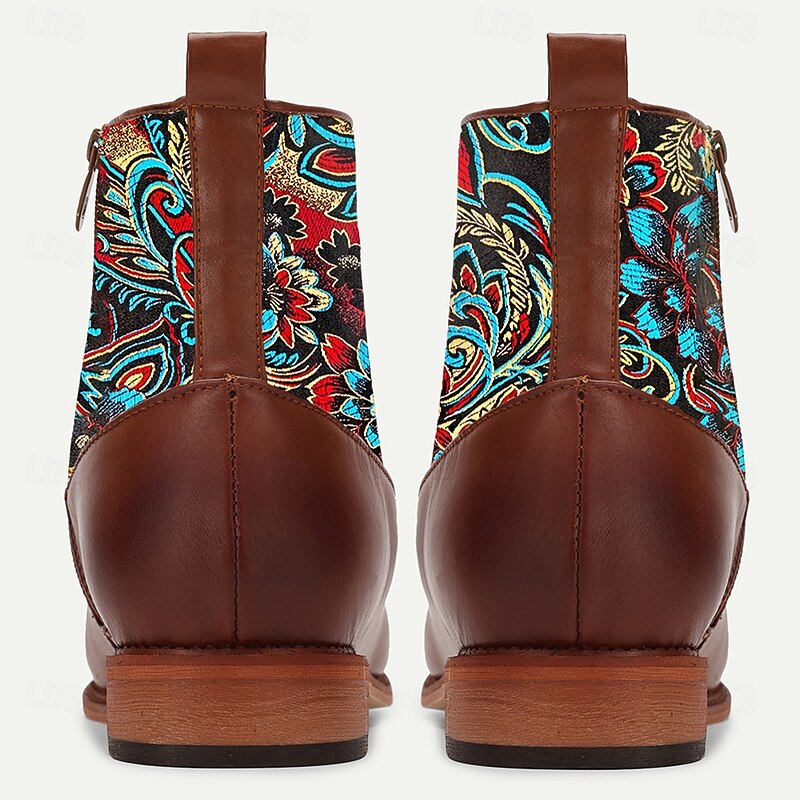 Men's Brown and Blue Jacquard Fabric Ankle Boots with Embroidered Pattern, Retro Fashion Statement Boots for Party, Stage Performance and Special Events 6