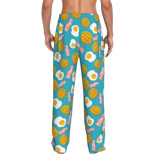 HOT ! Novastar Mens Pajama Pants Bottoms With Pockets- Waffle Poached Eggs Bacon Soft Mens Pj Pants, Comfy Men Lounge Pants