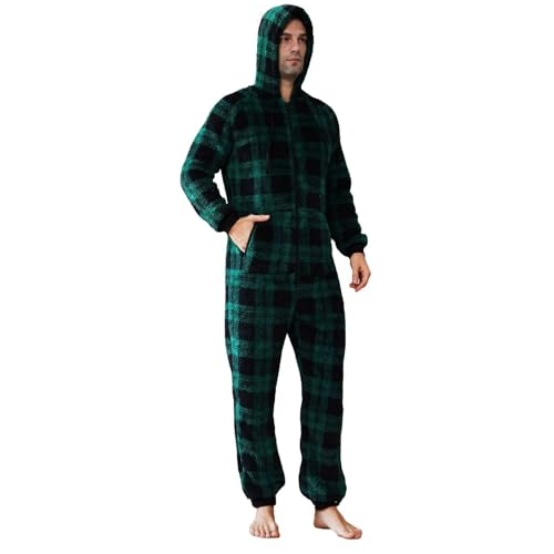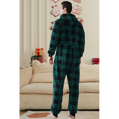 Lu's Chic Men's Hooded Onesie Pajamas Lightweight Fuzzy Fleece Zip Up Jumpsuit Long Sleeve Long Pants One Piece Pjs 6