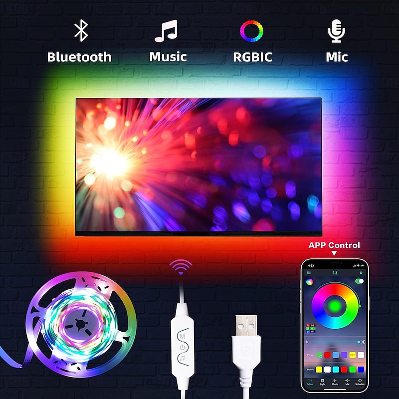 $17.99 - TV LED Backlight Strip RGBIC Programmable Music Synchronization Timing Bluetooth APP Control 2.4G Control 1-5M TV/Monitor Backlight Indoor or Outdoor Activities Festival Decoration USB 5050 Light Strip 2025. Shop for cheap USB Strip Lights online? Buy at lightinthebox.com on sale today!