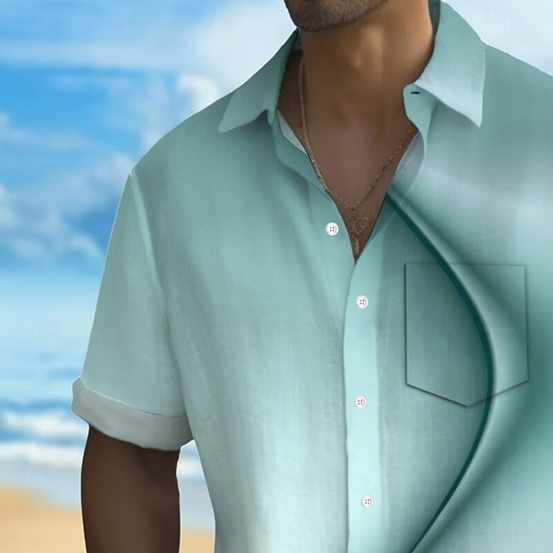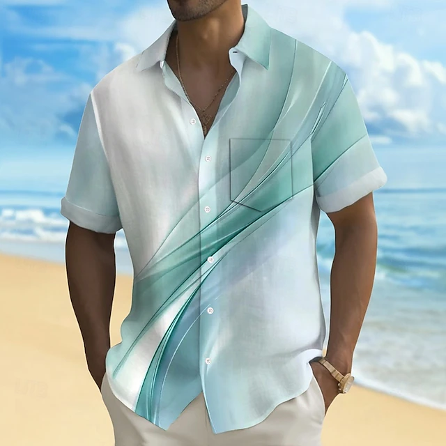 More information about Men's Gradient Waves Marble Shirt Summer Shirt Button Up Shirt Short Sleeve Fashion Casual Outdoor Vacation Dailywear Summer Spring Turndown 3D Print Collared Shirts Front One Pocket White Blue Khaki
