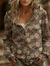 More information about Women's Zip Up Hoodies Pullover Floral Fashion Streetwear Casual Long Sleeve Hooded Regular Tops Dailywear Casual Zipper Print Green Spring Fall Winter