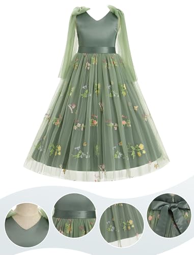 • Flower Girl Dress: Elegant kids girls v neck sleeveless floral embroidered tulle princess dress toddler girls flower girl dress for wedding big girls wedding junior bridesmaid embroidered tulle maxi dress, spring floor length evening gown, girls tulle floral embroidered maxi dress is create from premium fabric this dress is ultra-soft, breathable, and gentle on delicate skin. It provides all-day comfort, allowing your girl to enjoy her moments to the fullest.