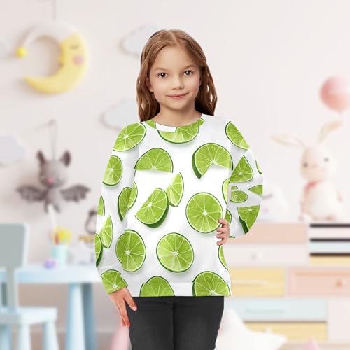 JUNZAN Fresh Lime Fruit White Big Girls Sweatshirts Hoodies Long Sleeve Sweatshirt With Hoodie Party 4T 6