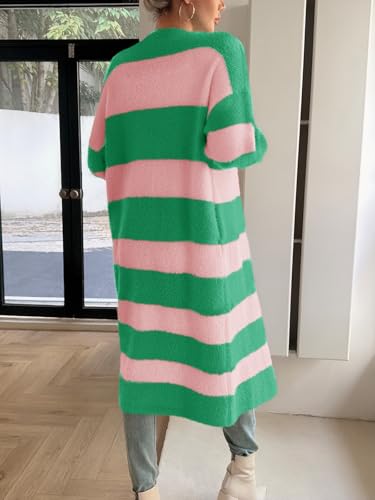 Saodimallsu Womens Striped Long Cardigan Sweaters Open Front Oversized Chunky Fuzzy Knit Fall Duster Sweater Coats 4