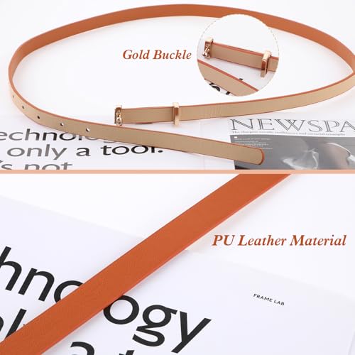 2Pcs Women's PU Leather Skinny Belt, Thin Waist Belt Soft Slim Waistband Alloy Gold Buckle Belt for Dress Pants Jeans 7