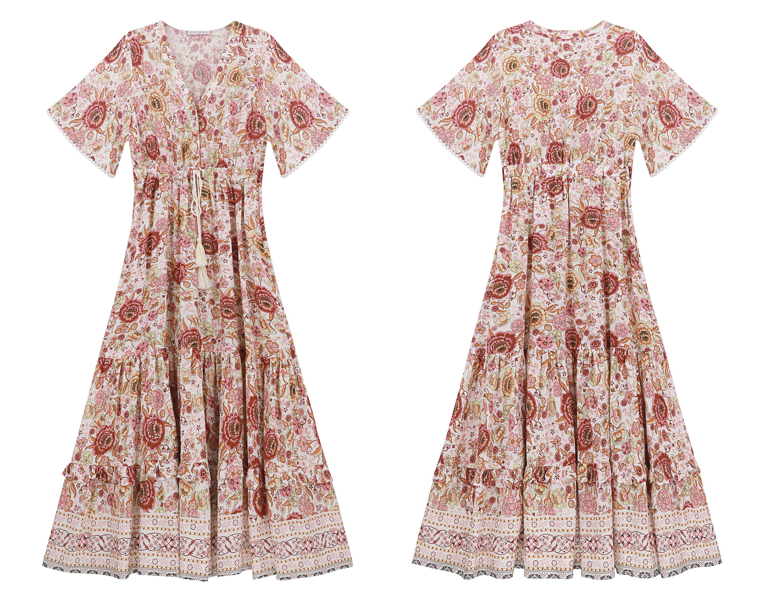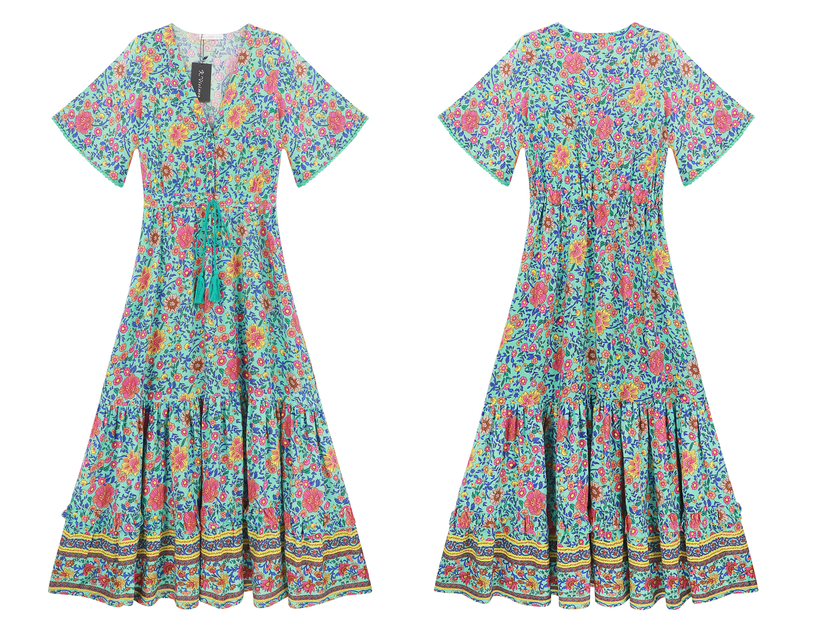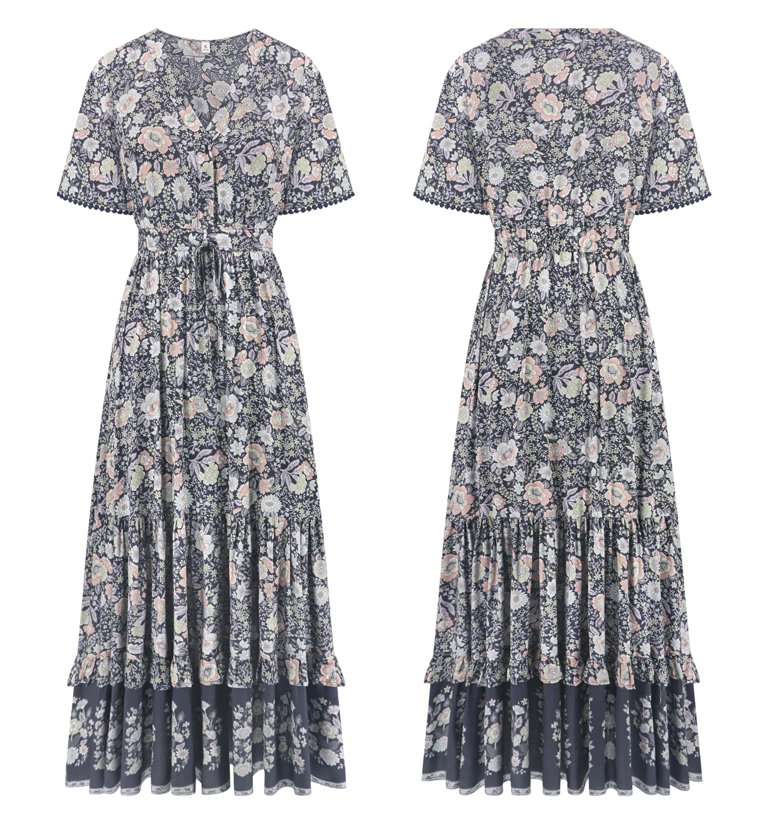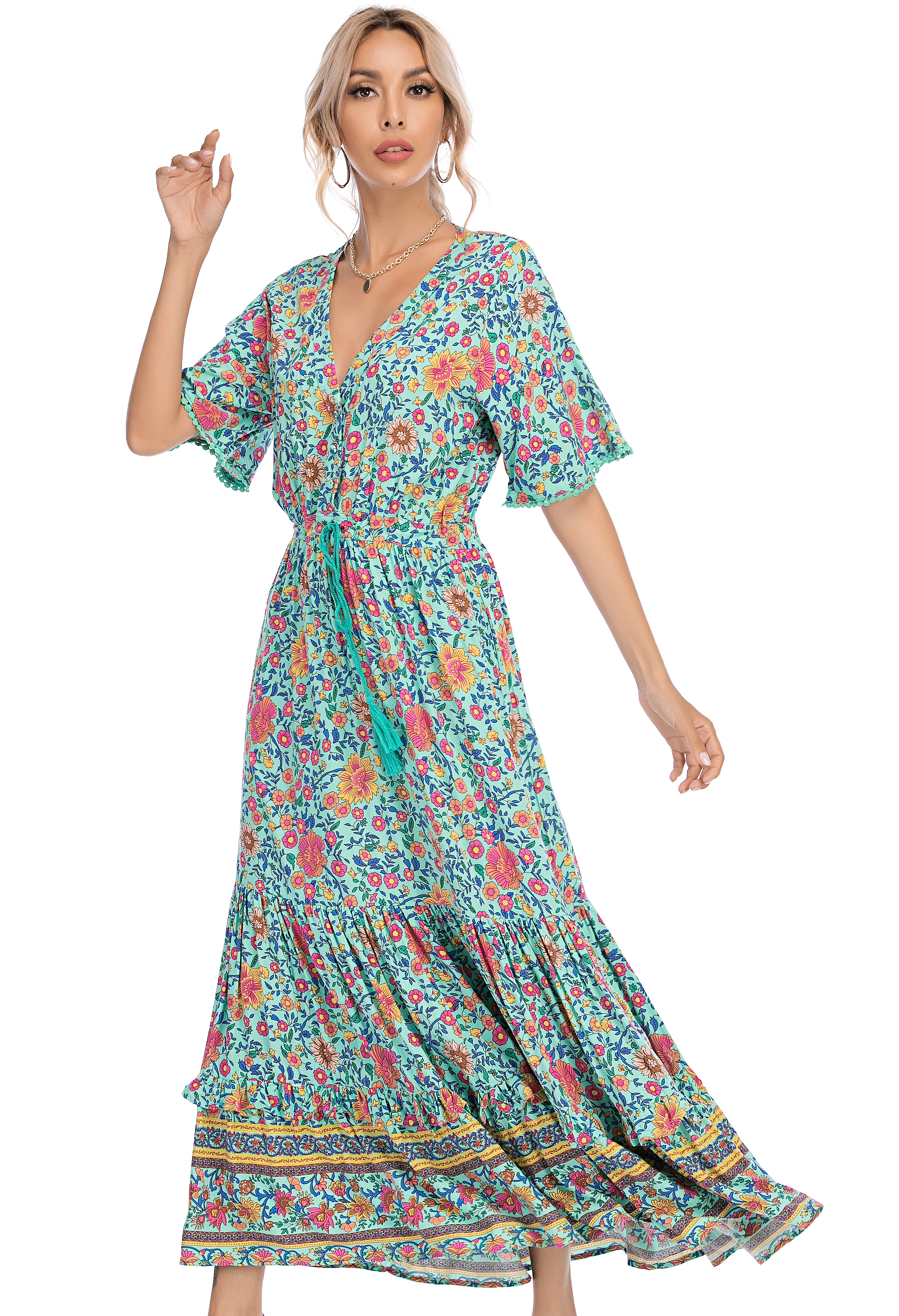 R.Vivimos Women's Drawstring Tie Floral Print Long Dresses