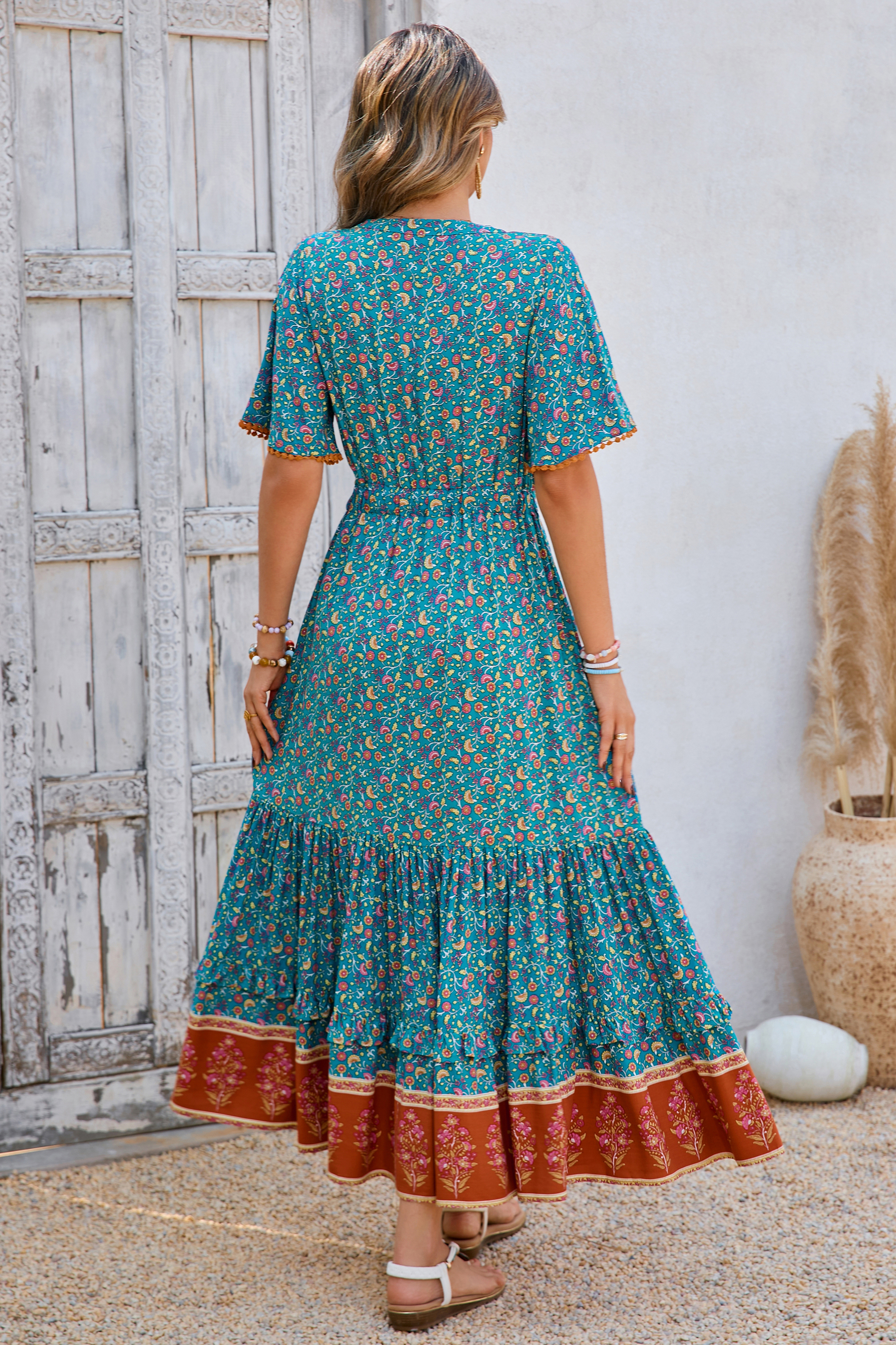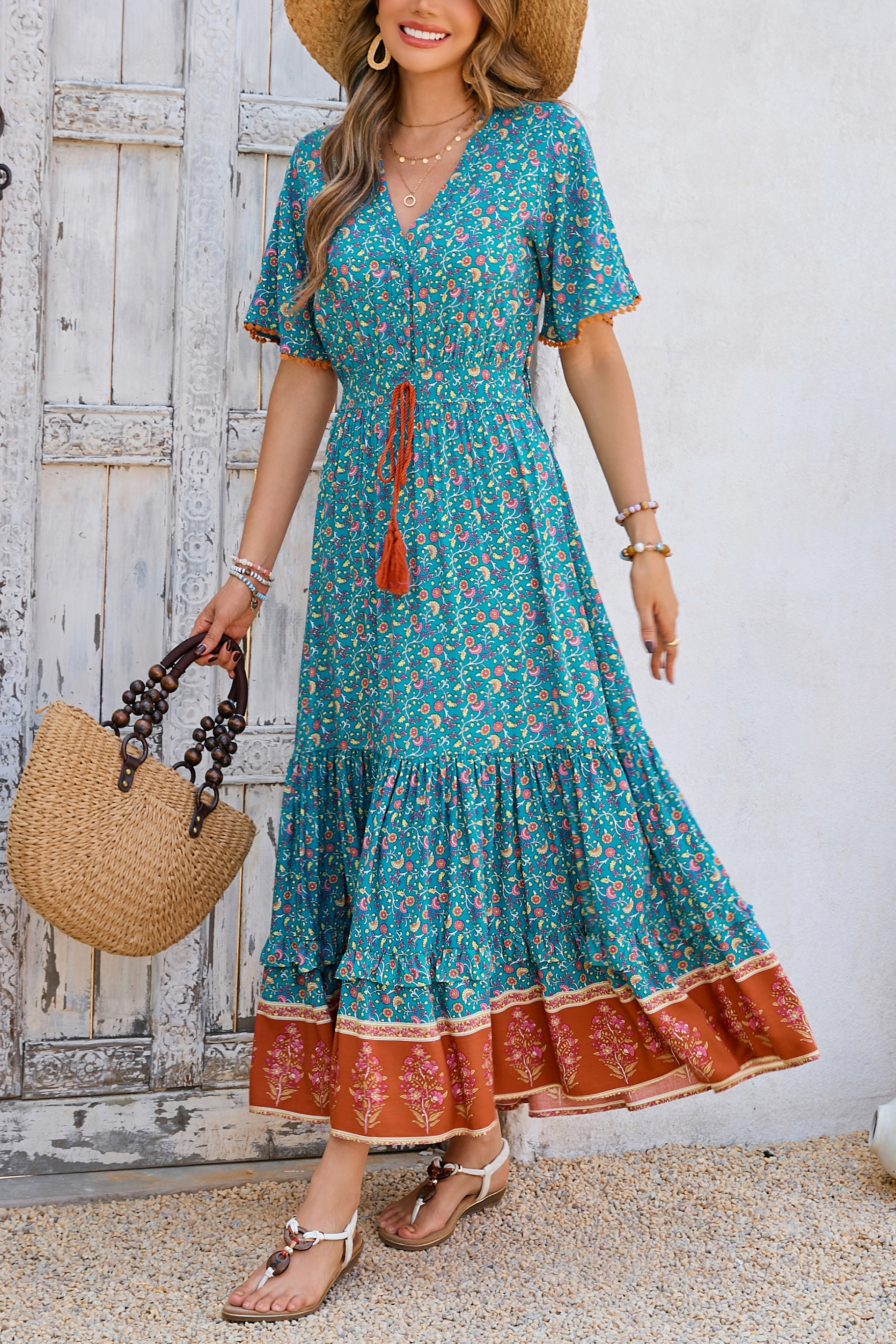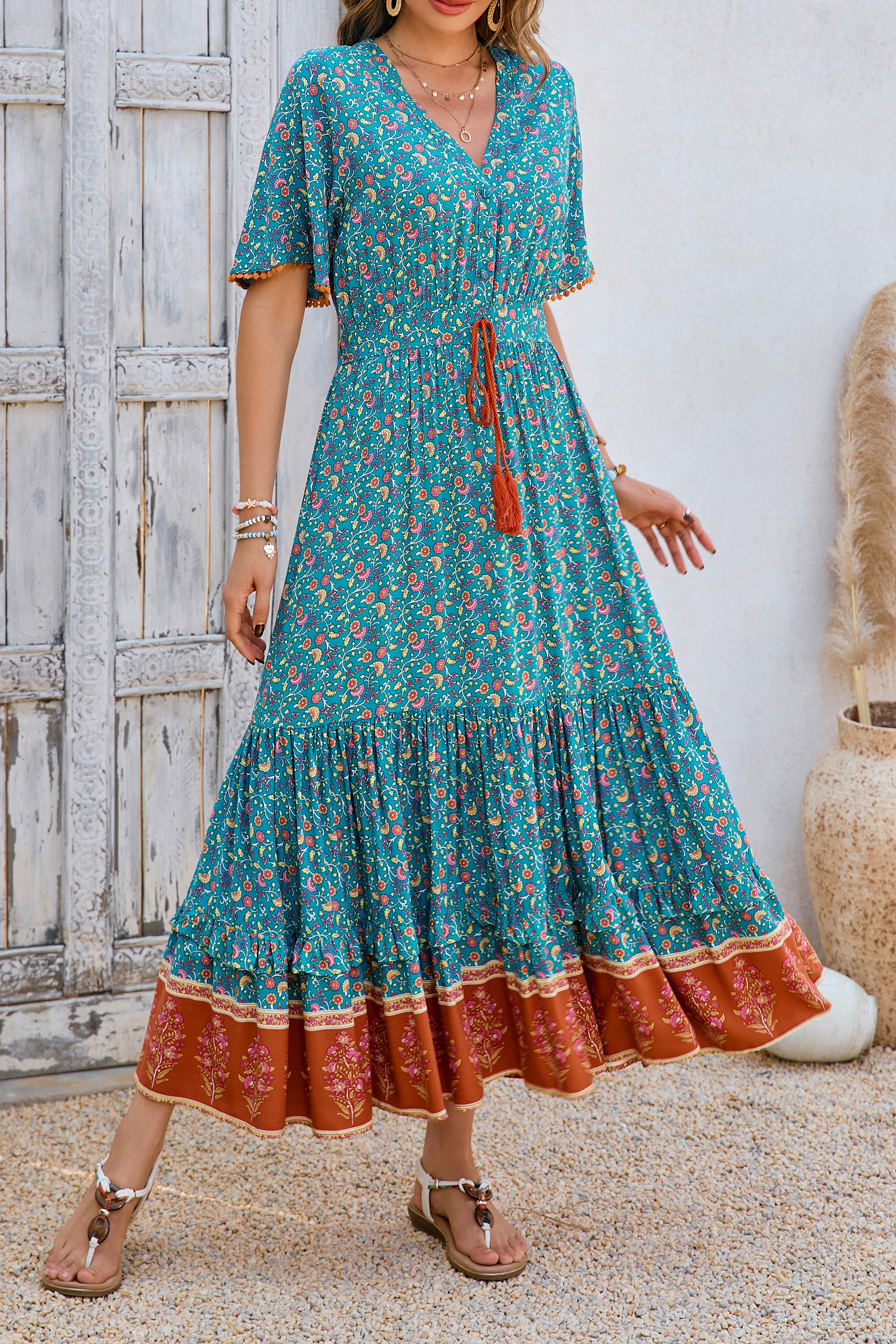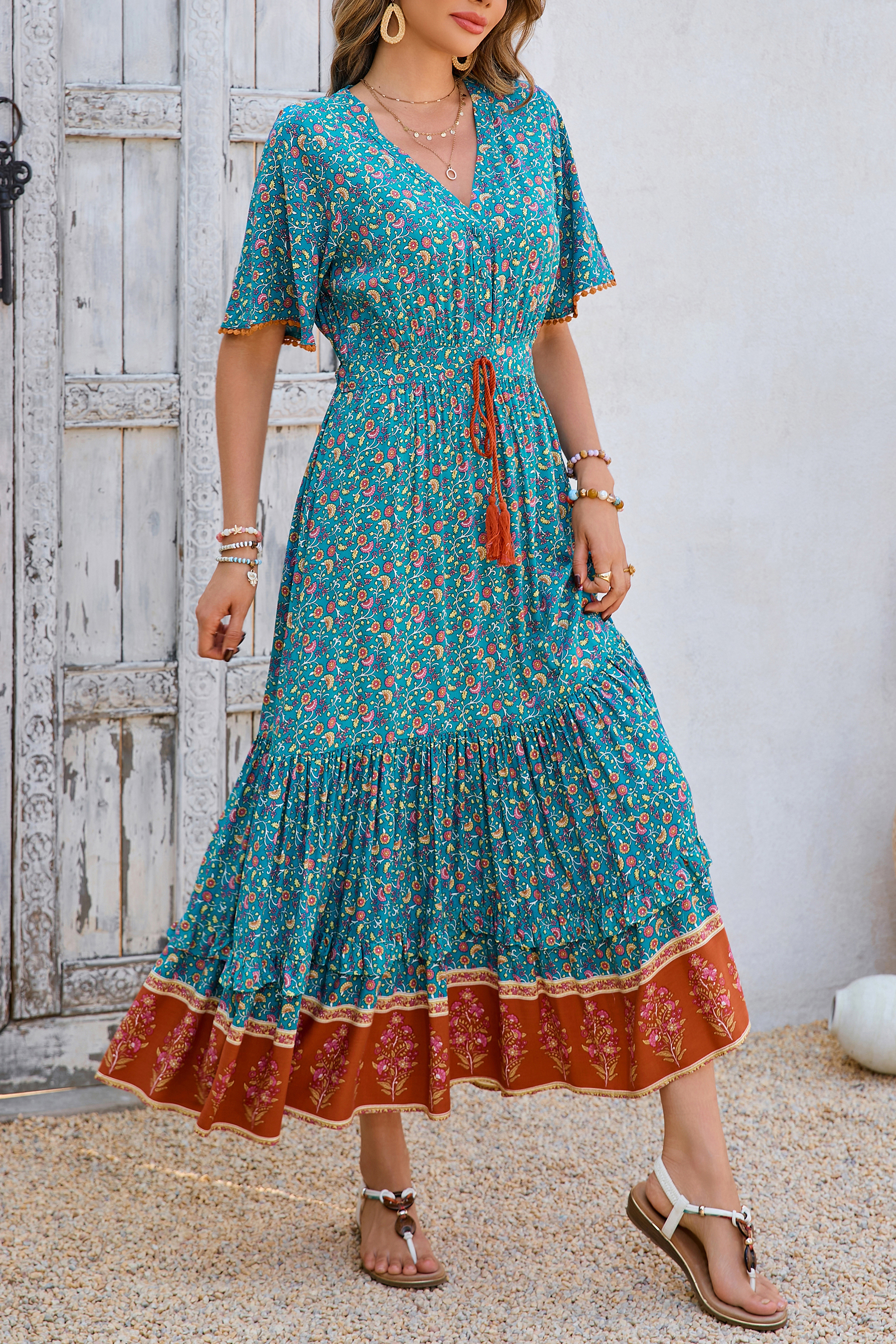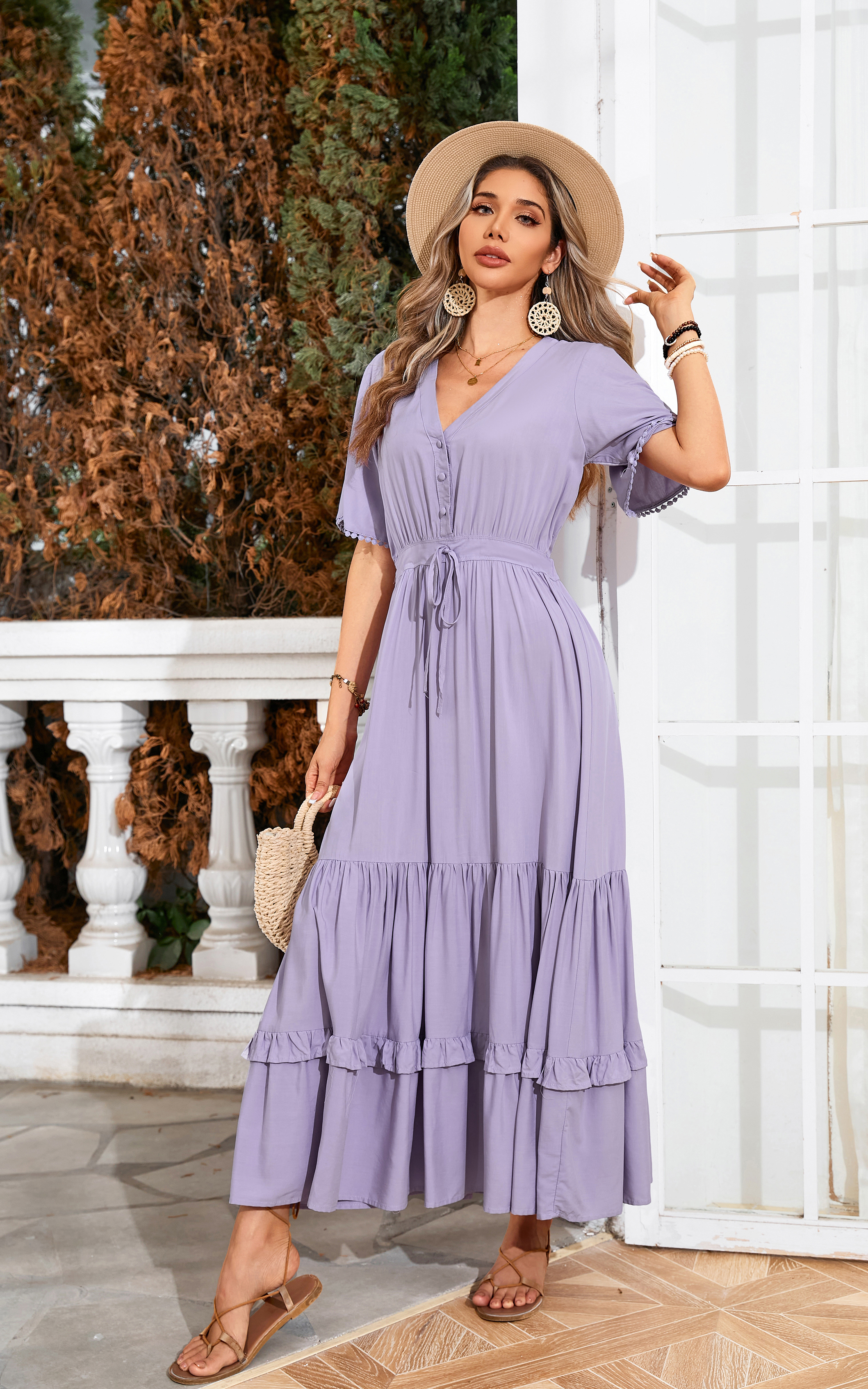 This tiered ruffle dress drapes beautifully, creating a flowy and relaxed fit that is both comfortable and casual. Versatile yet dressy style will make this a-line dress become an awesome addition if you are building your summer wardrobe!