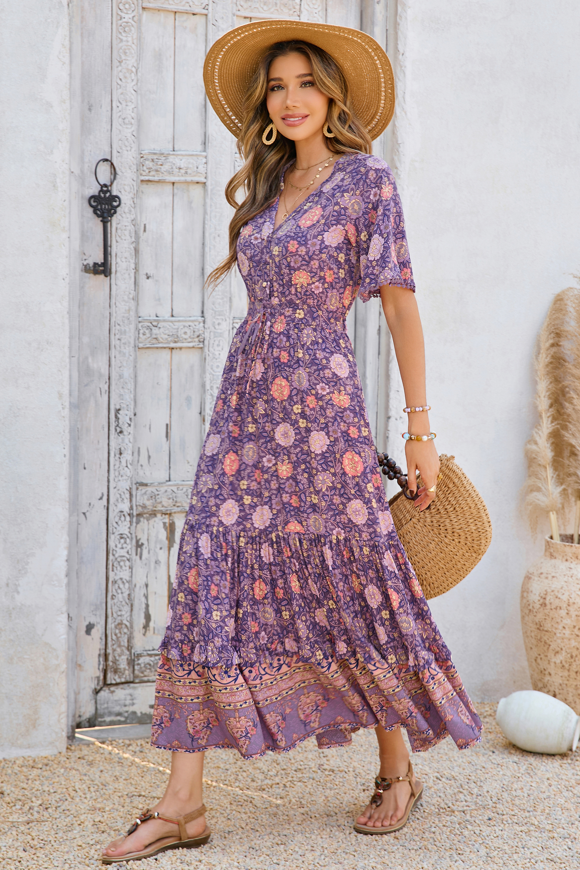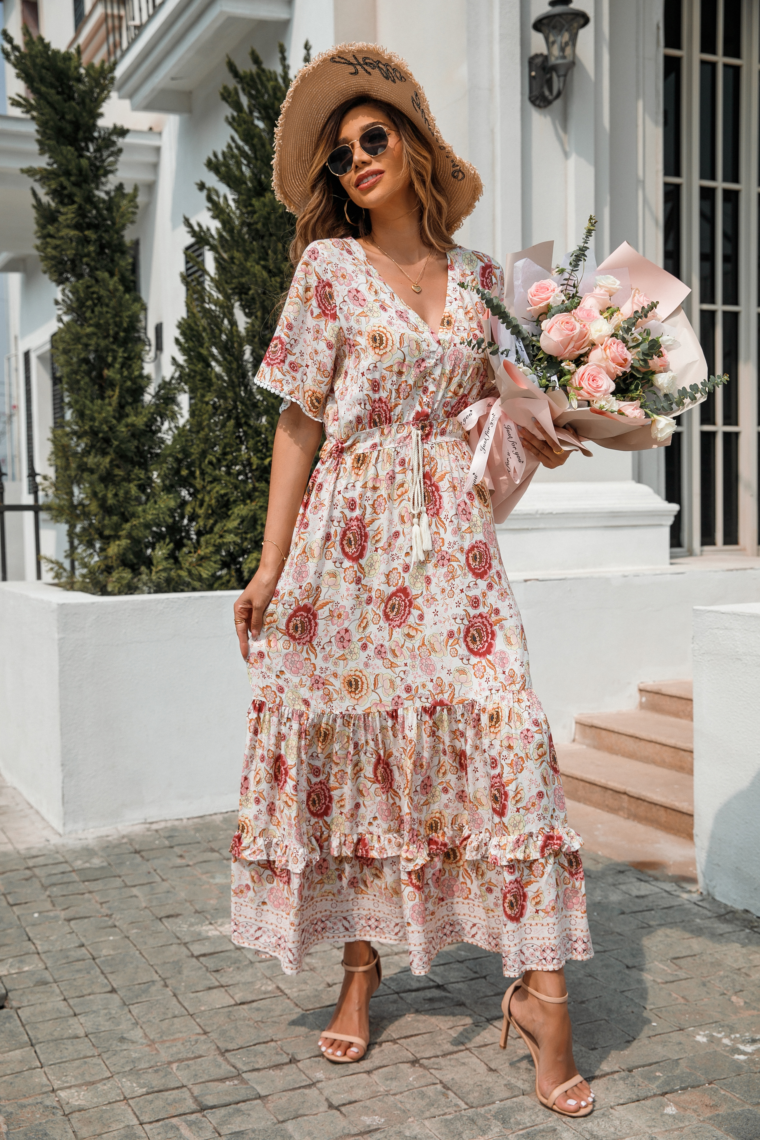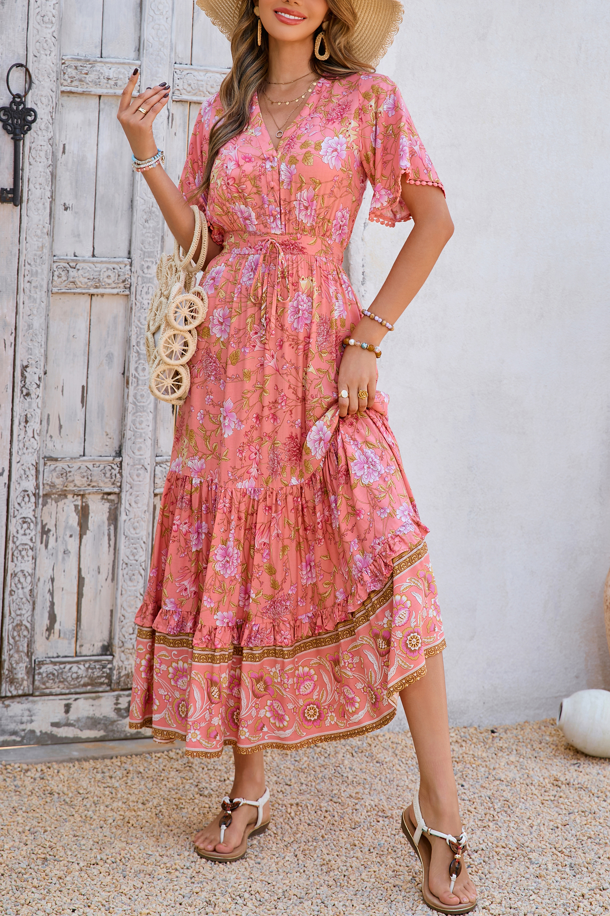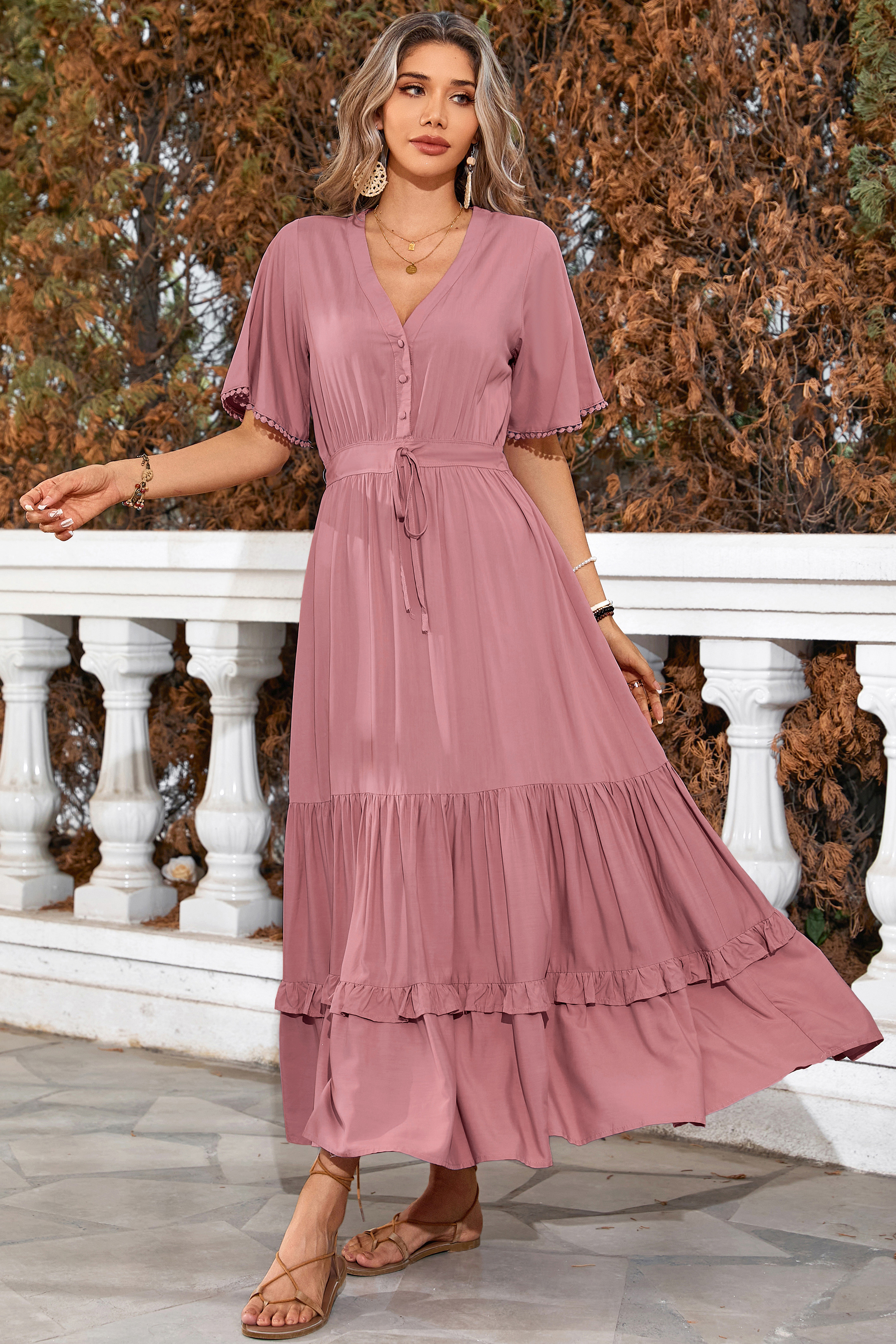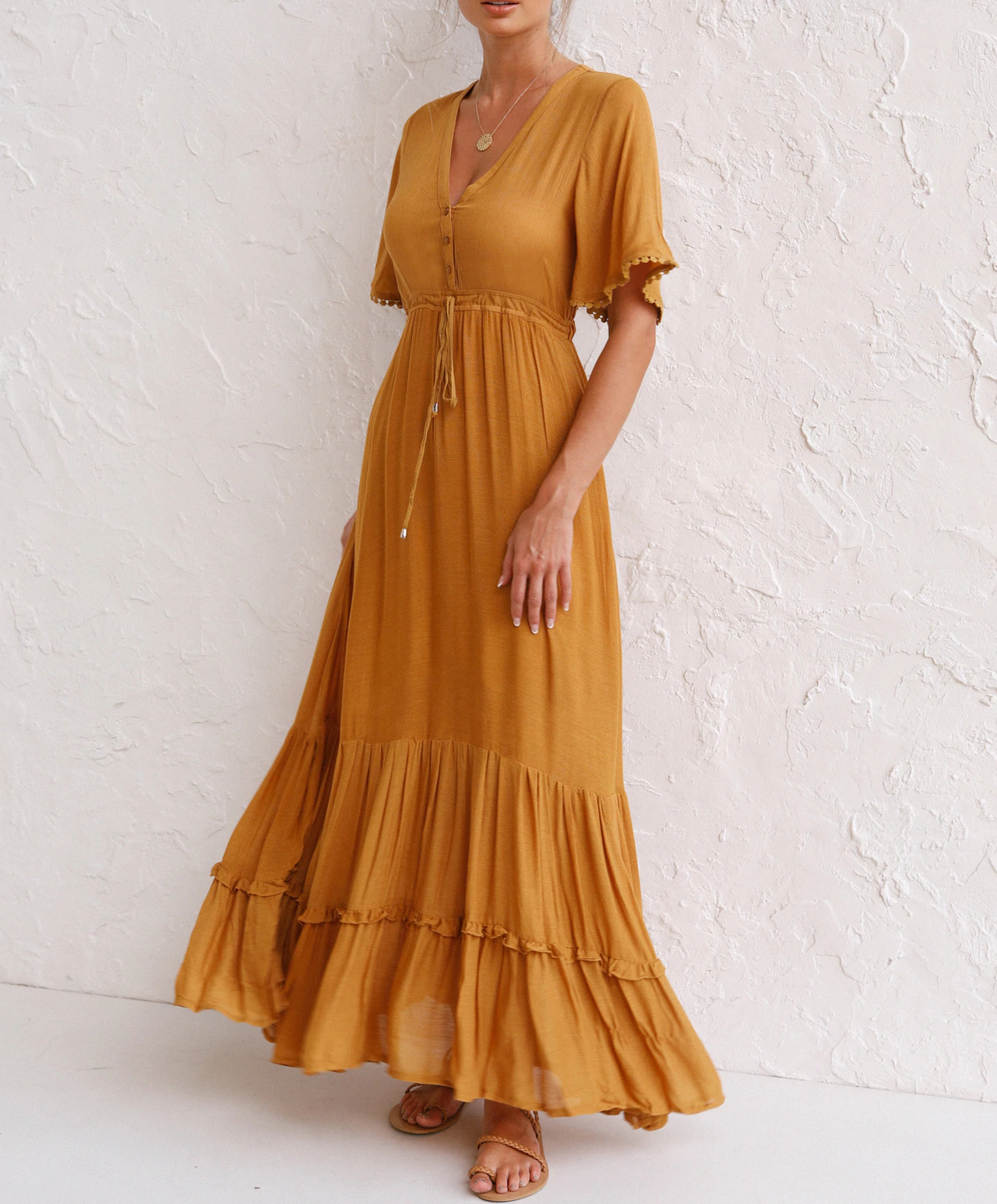 This tiered ruffle dress drapes beautifully, creating a flowy and relaxed fit that is both comfortable and casual. Versatile yet dressy style will make this a-line dress become an awesome addition if you are building your summer wardrobe!