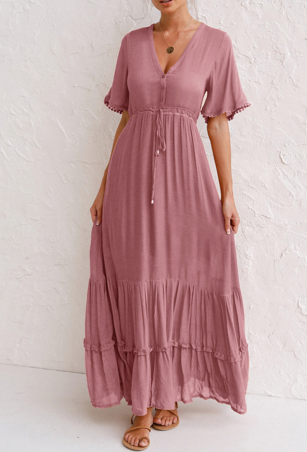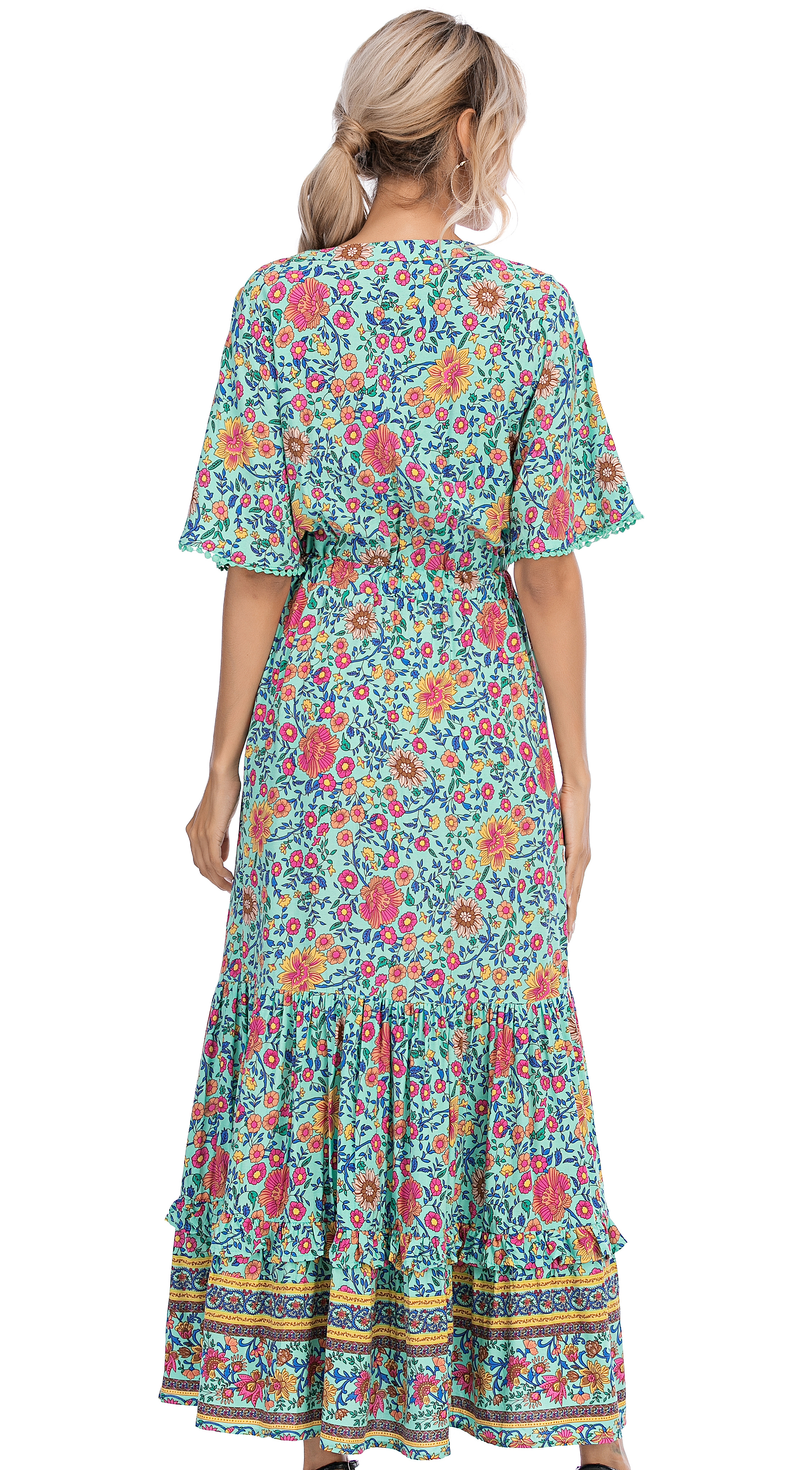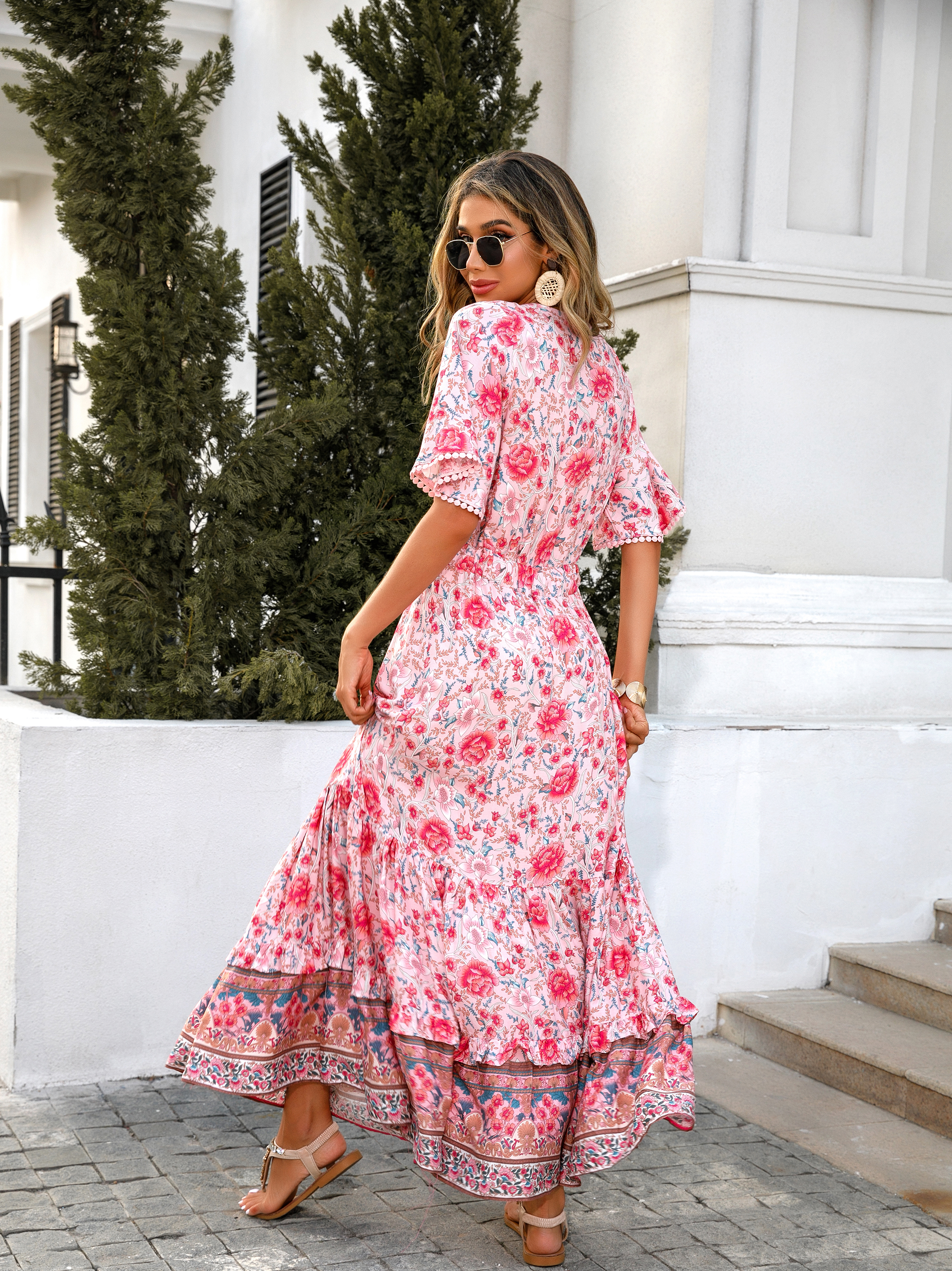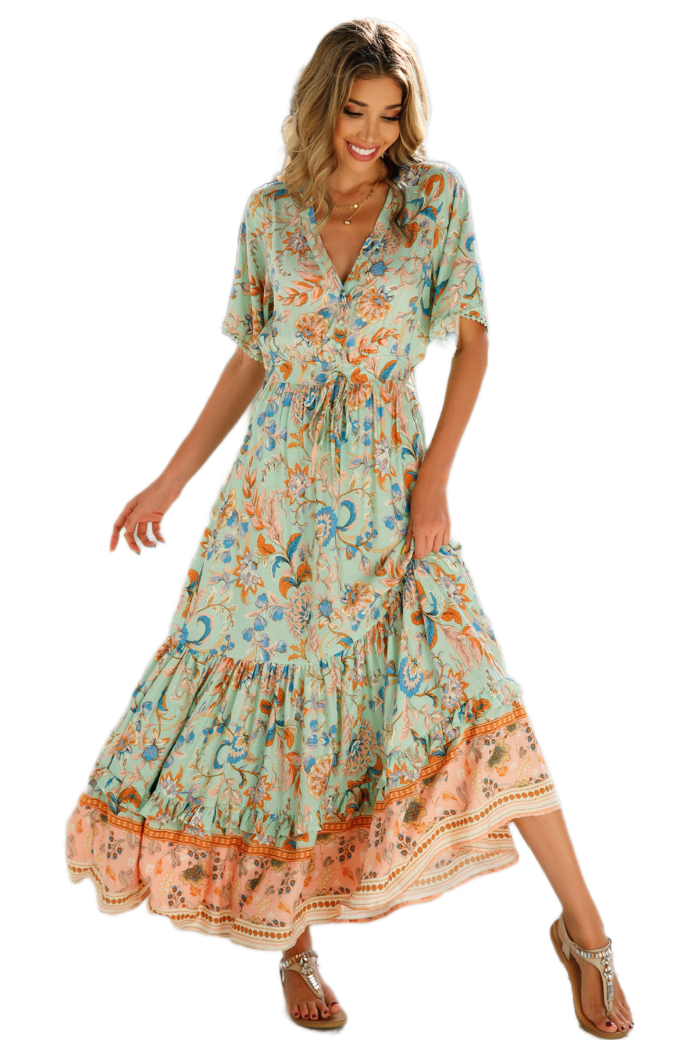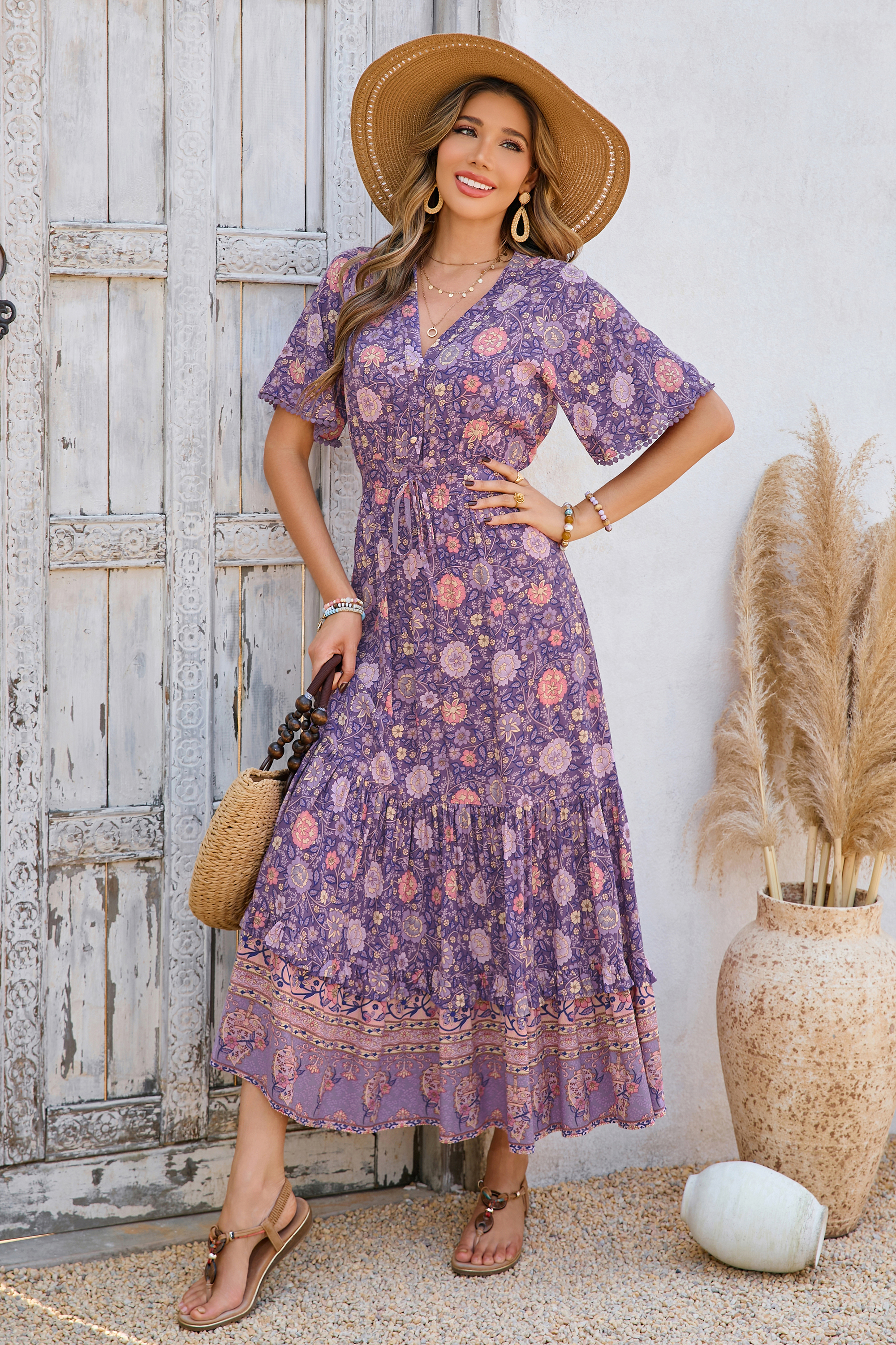 This tiered ruffle dress drapes beautifully, creating a flowy and relaxed fit that is both comfortable and casual. Versatile yet dressy style will make this a-line dress become an awesome addition if you are building your summer wardrobe!