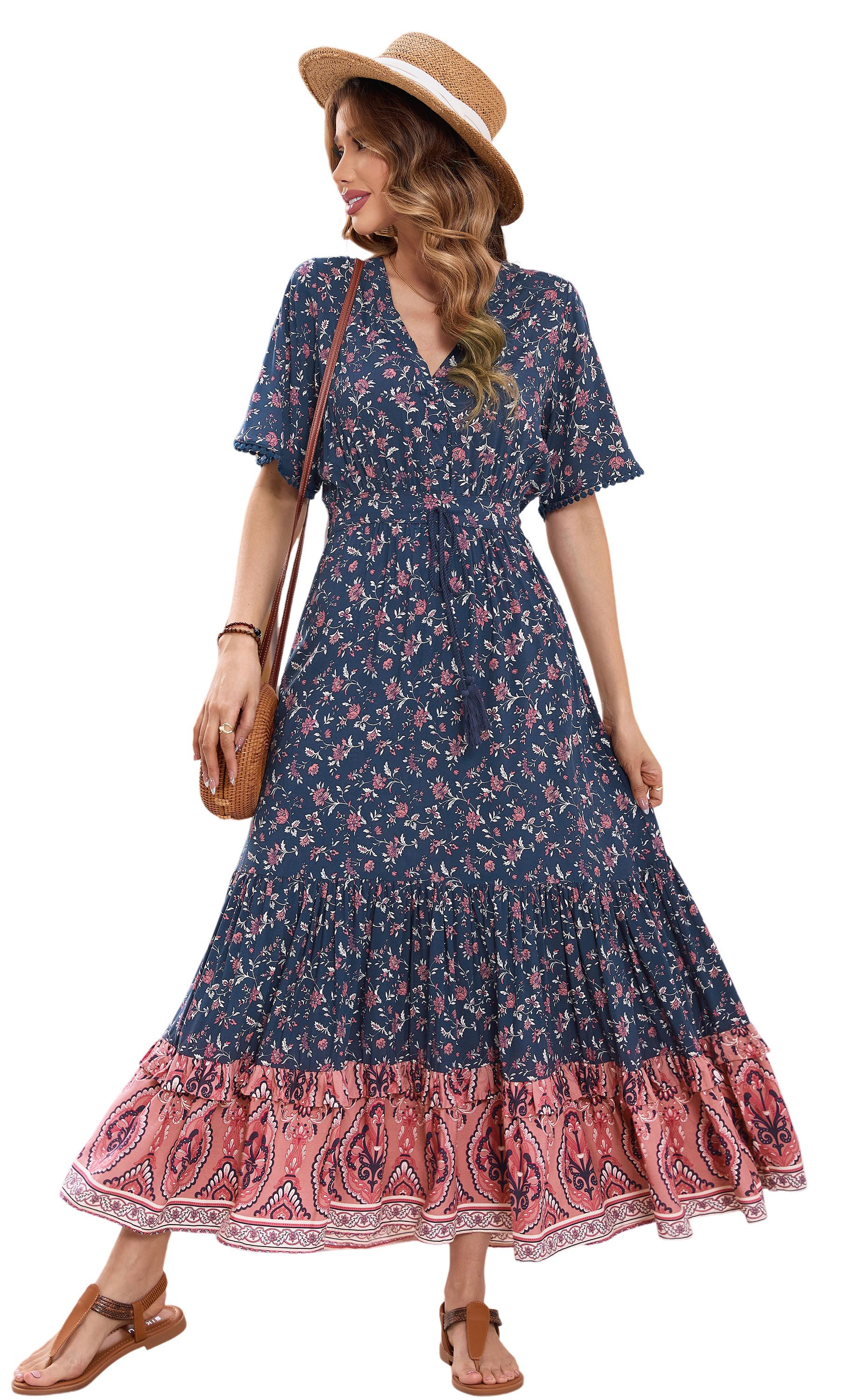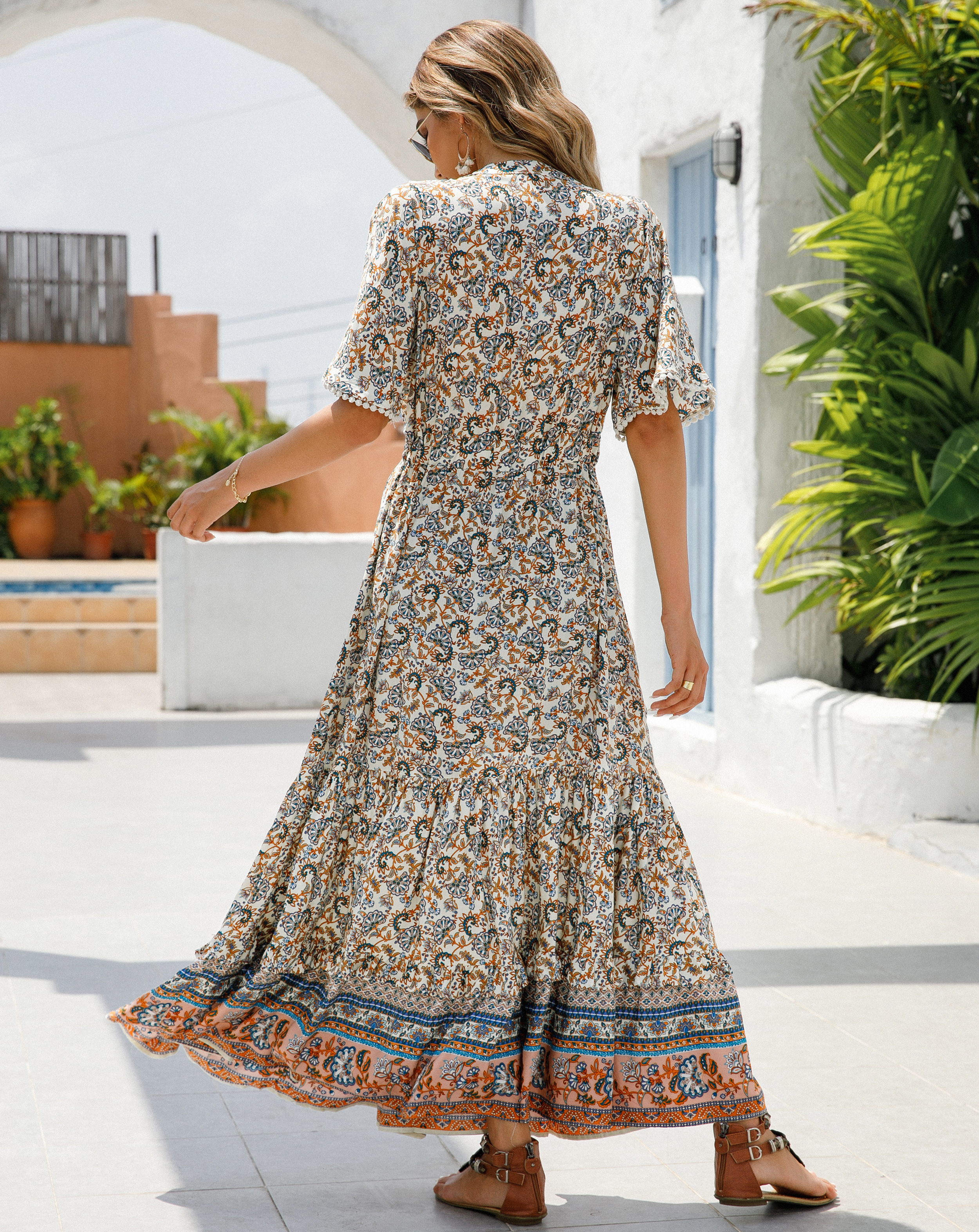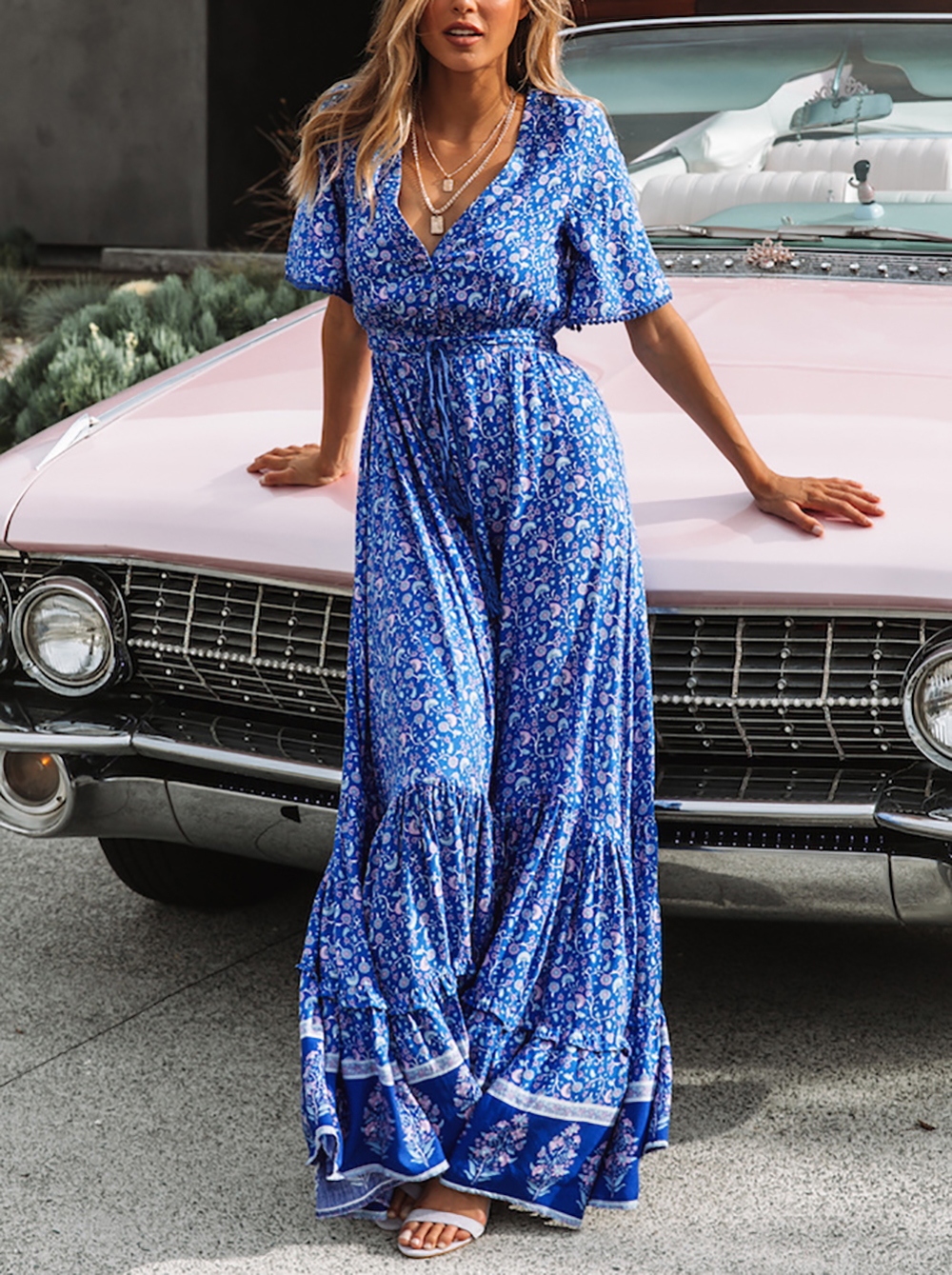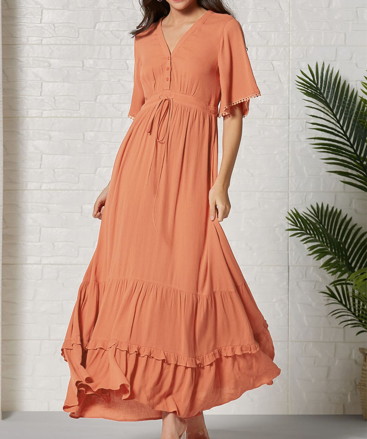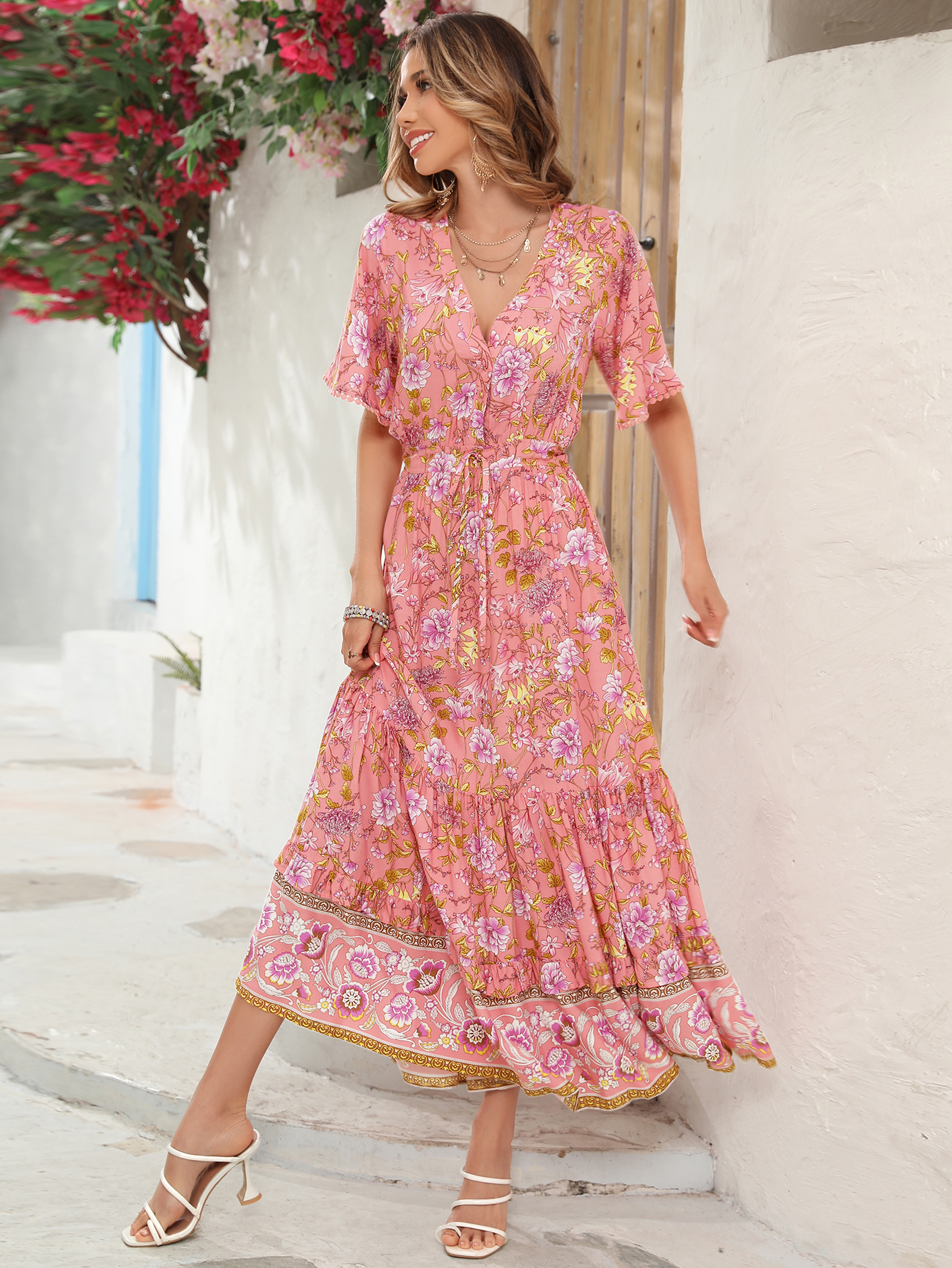This tiered ruffle dress drapes beautifully, creating a flowy and relaxed fit that is both comfortable and casual. Versatile yet dressy style will make this a-line dress become an awesome addition if you are building your summer wardrobe!