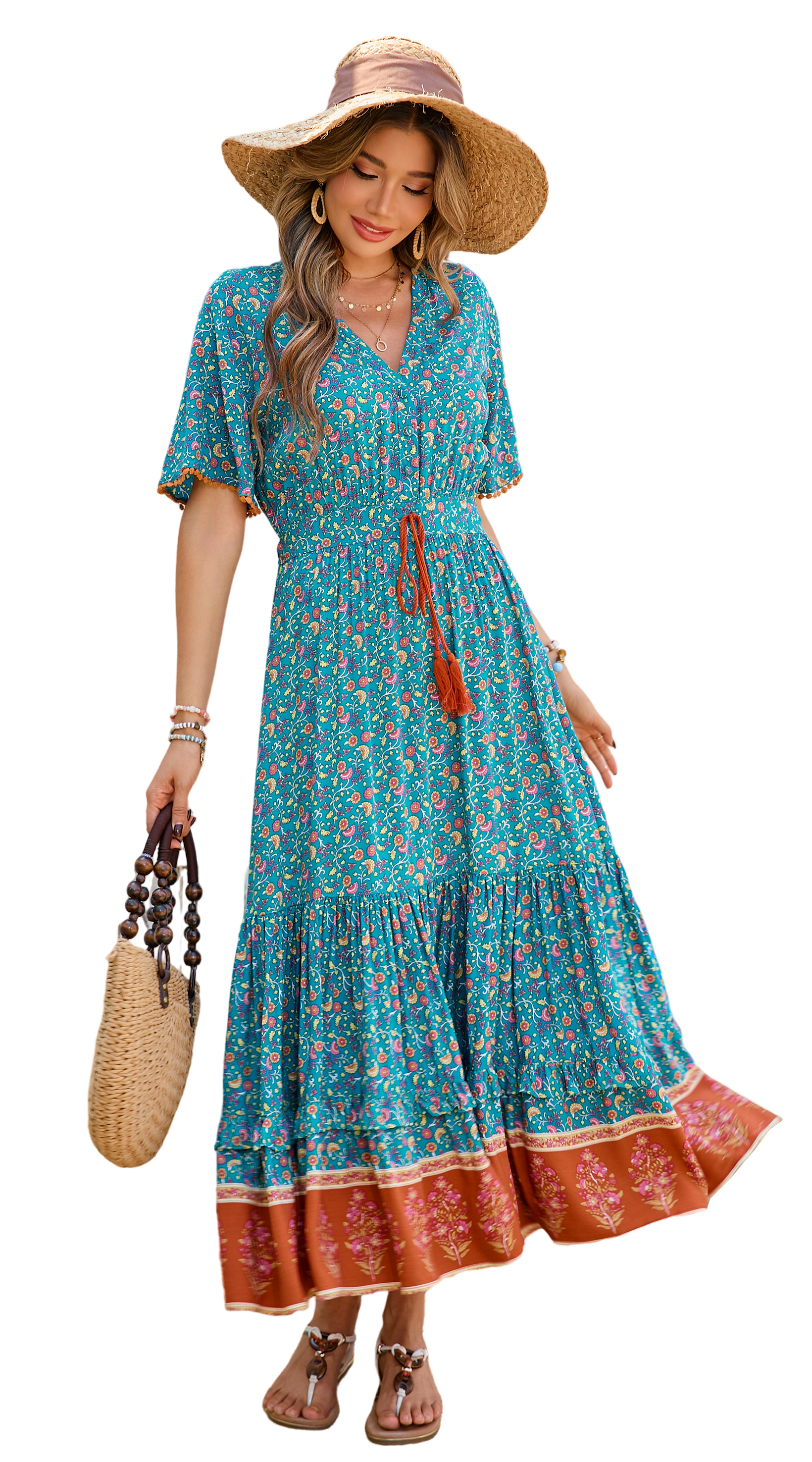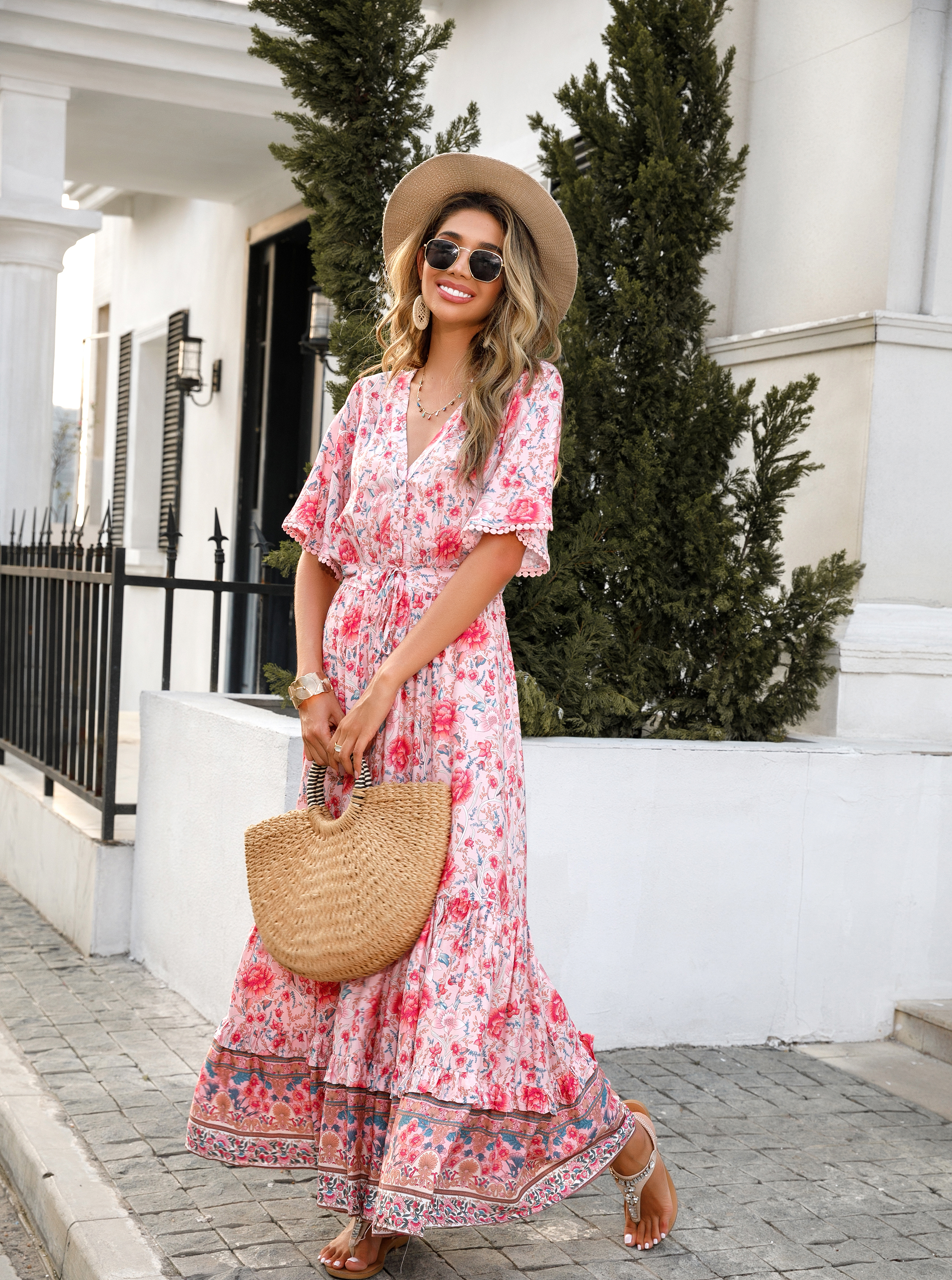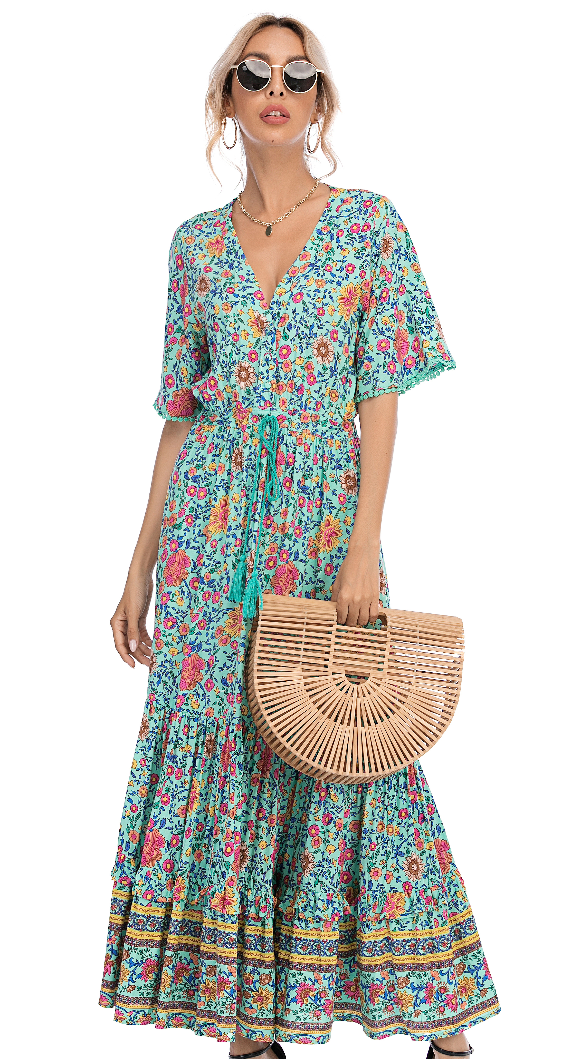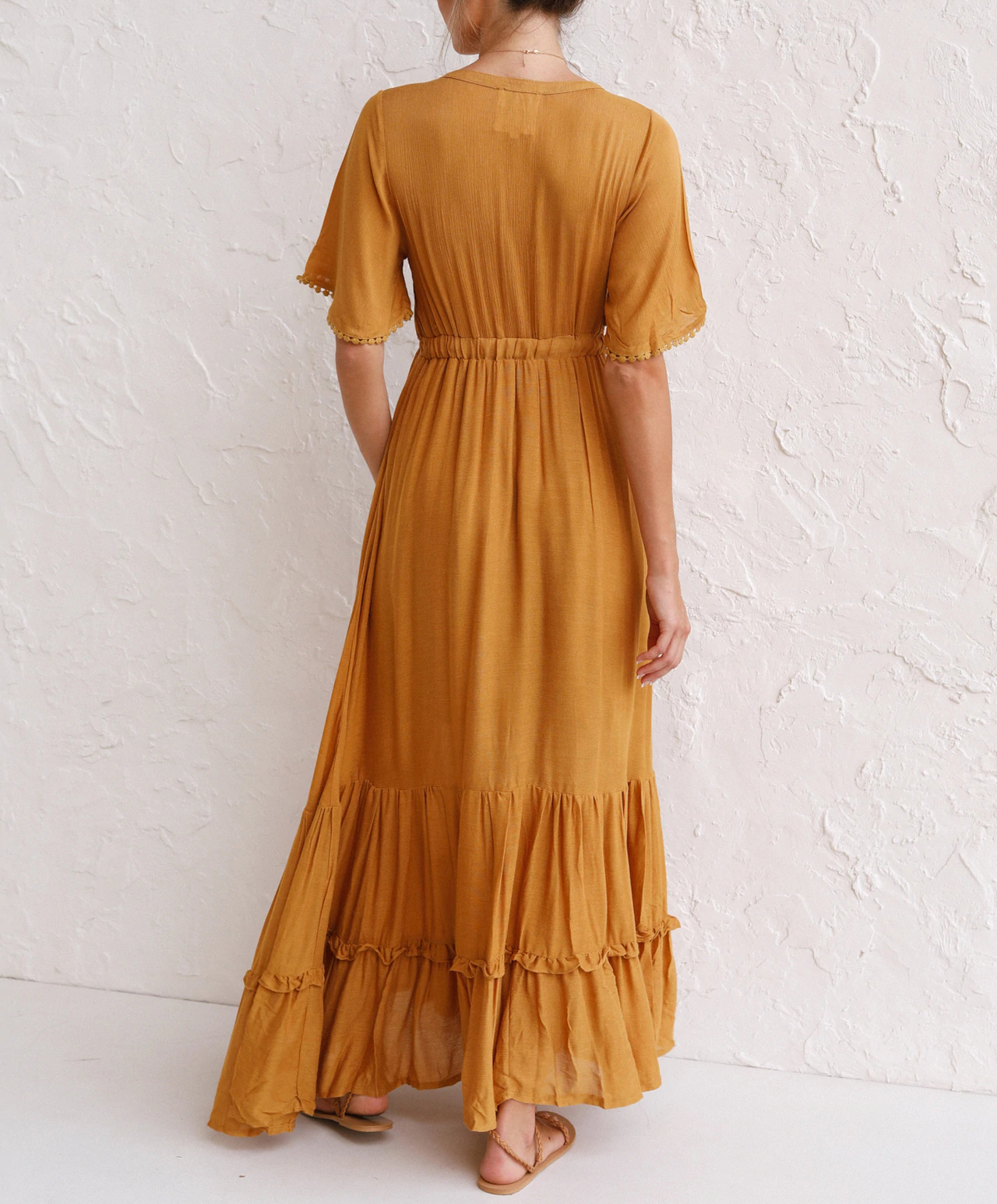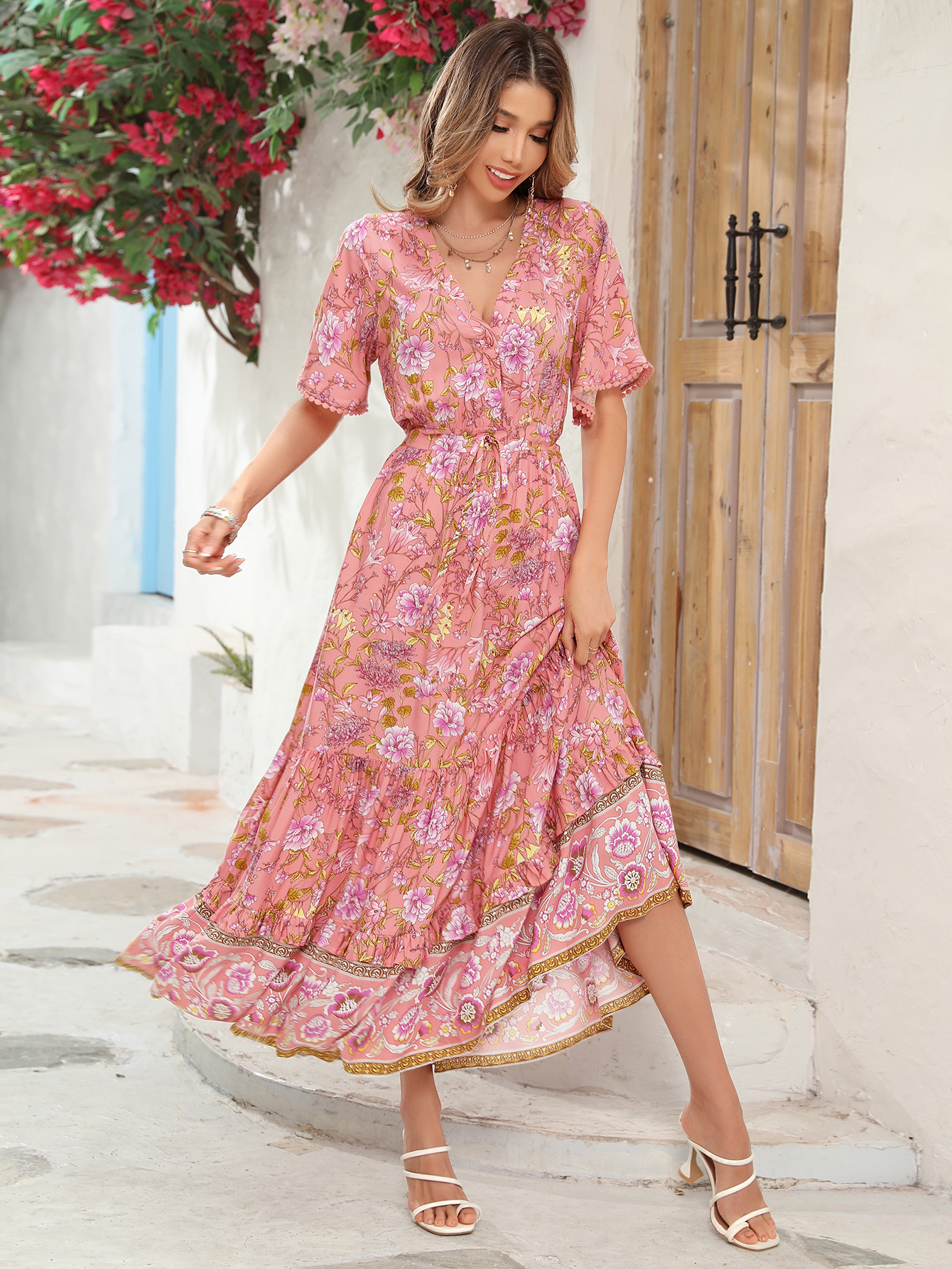 This tiered ruffle dress drapes beautifully, creating a flowy and relaxed fit that is both comfortable and casual. Versatile yet dressy style will make this a-line dress become an awesome addition if you are building your summer wardrobe!