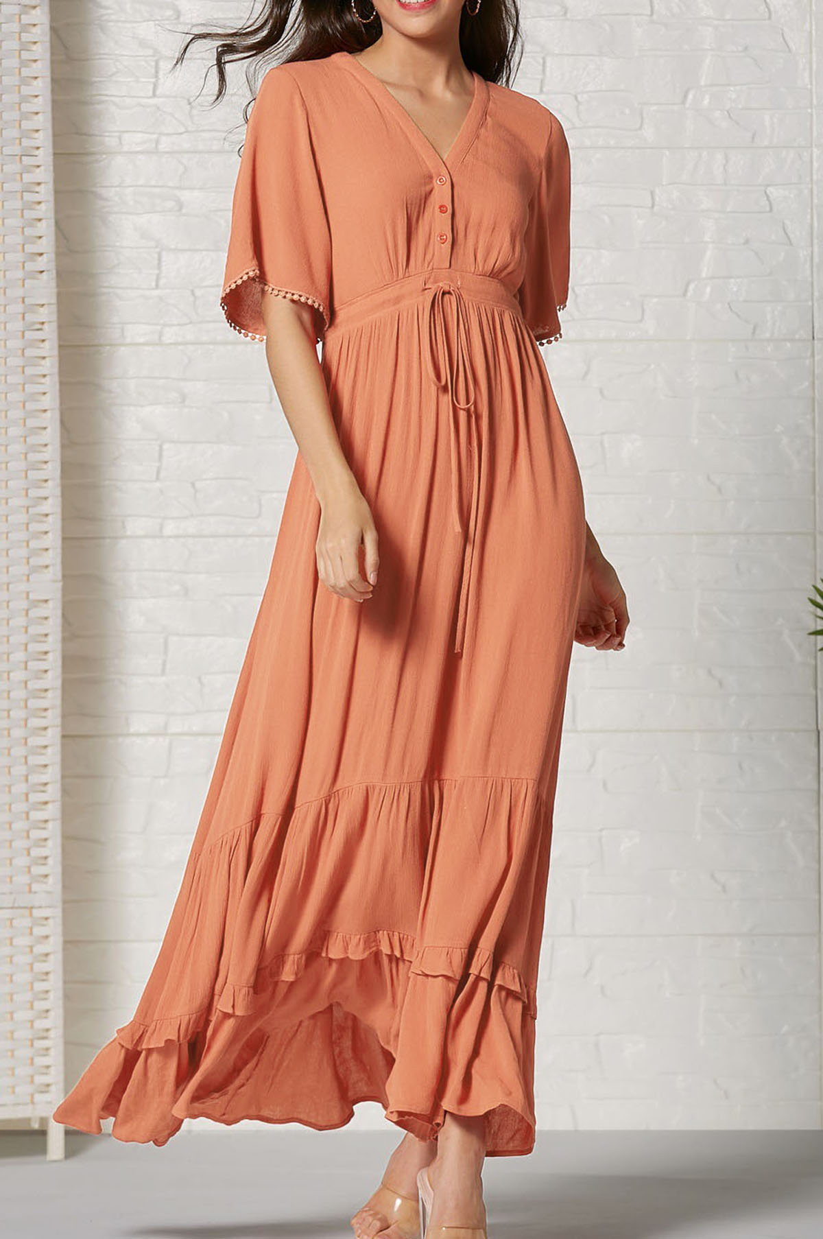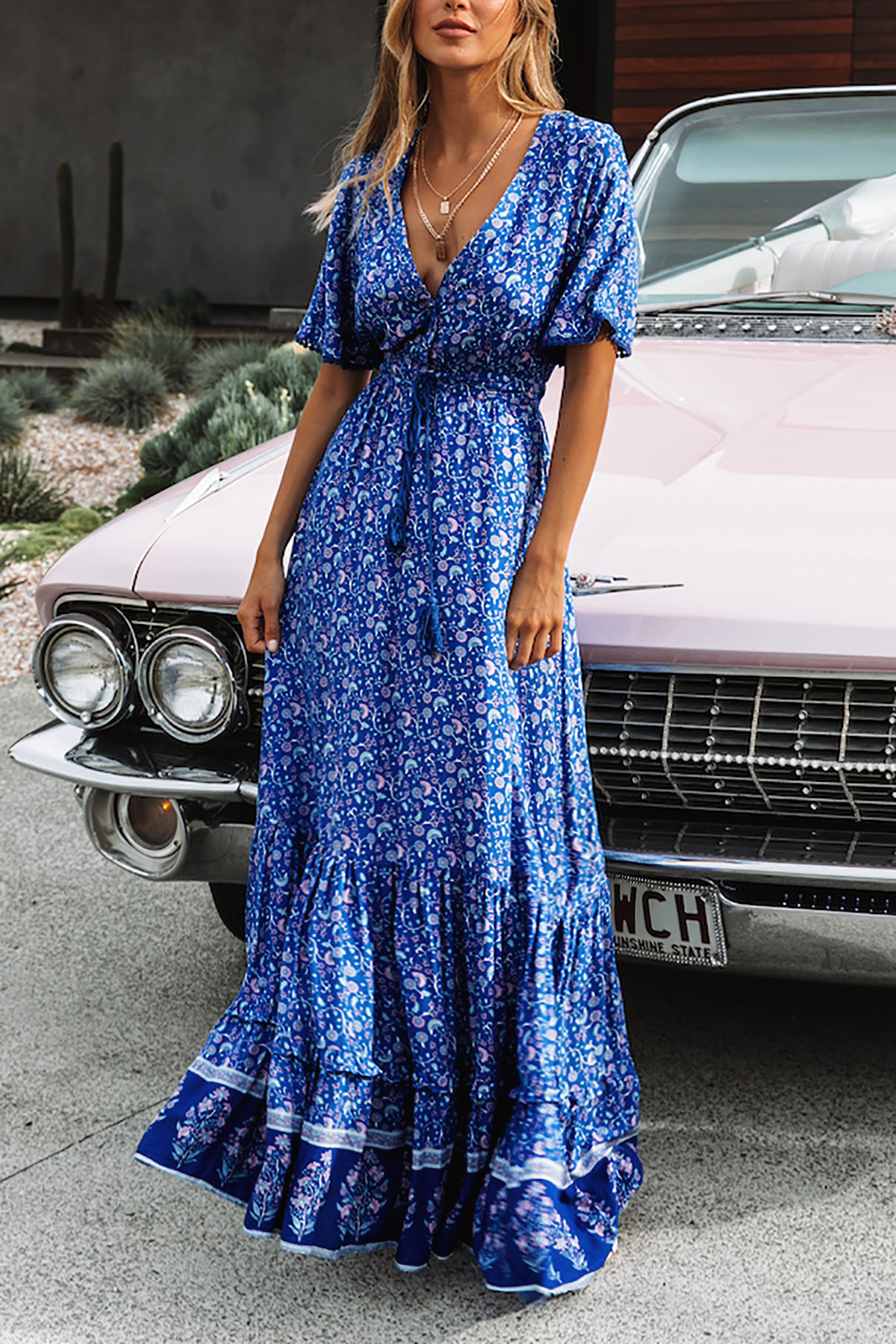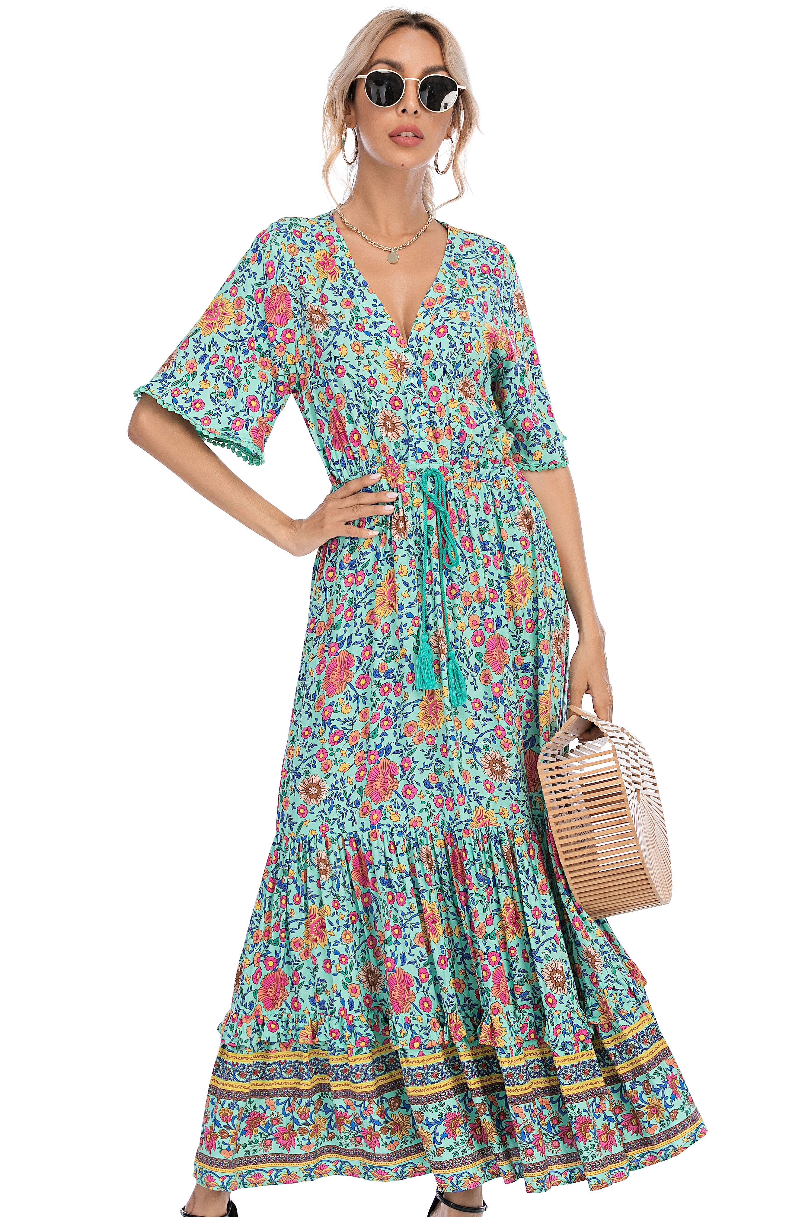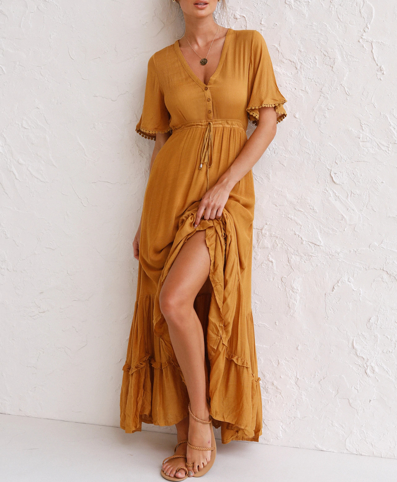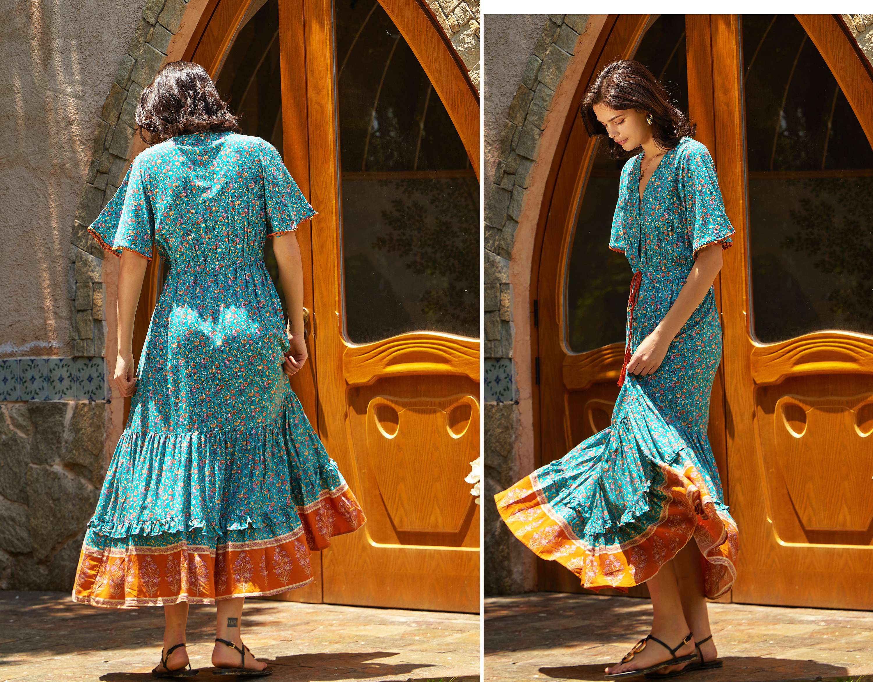 This tiered ruffle dress drapes beautifully, creating a flowy and relaxed fit that is both comfortable and casual. Versatile yet dressy style will make this a-line dress become an awesome addition if you are building your summer wardrobe!