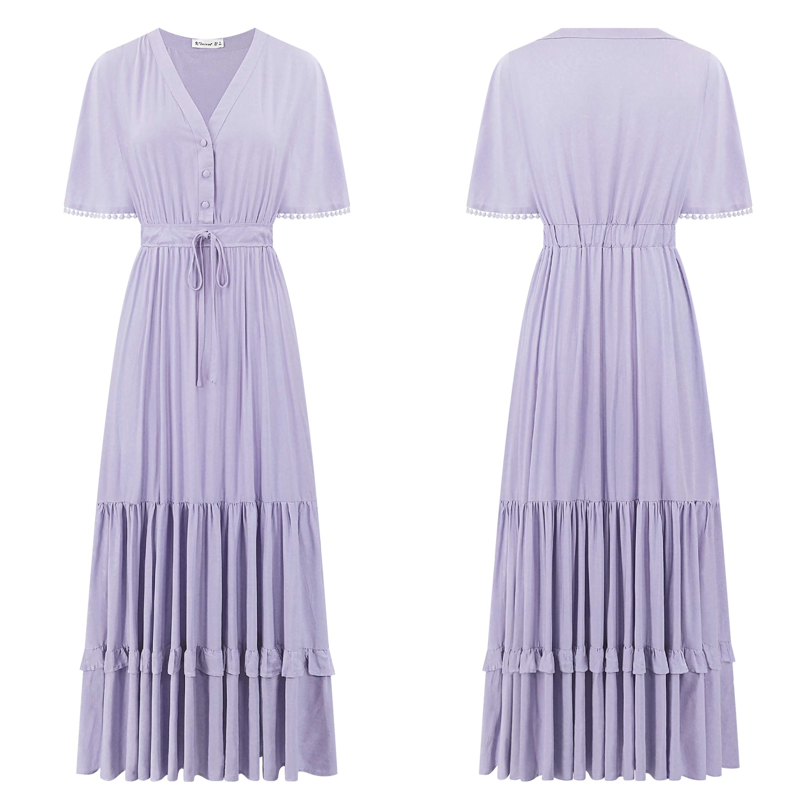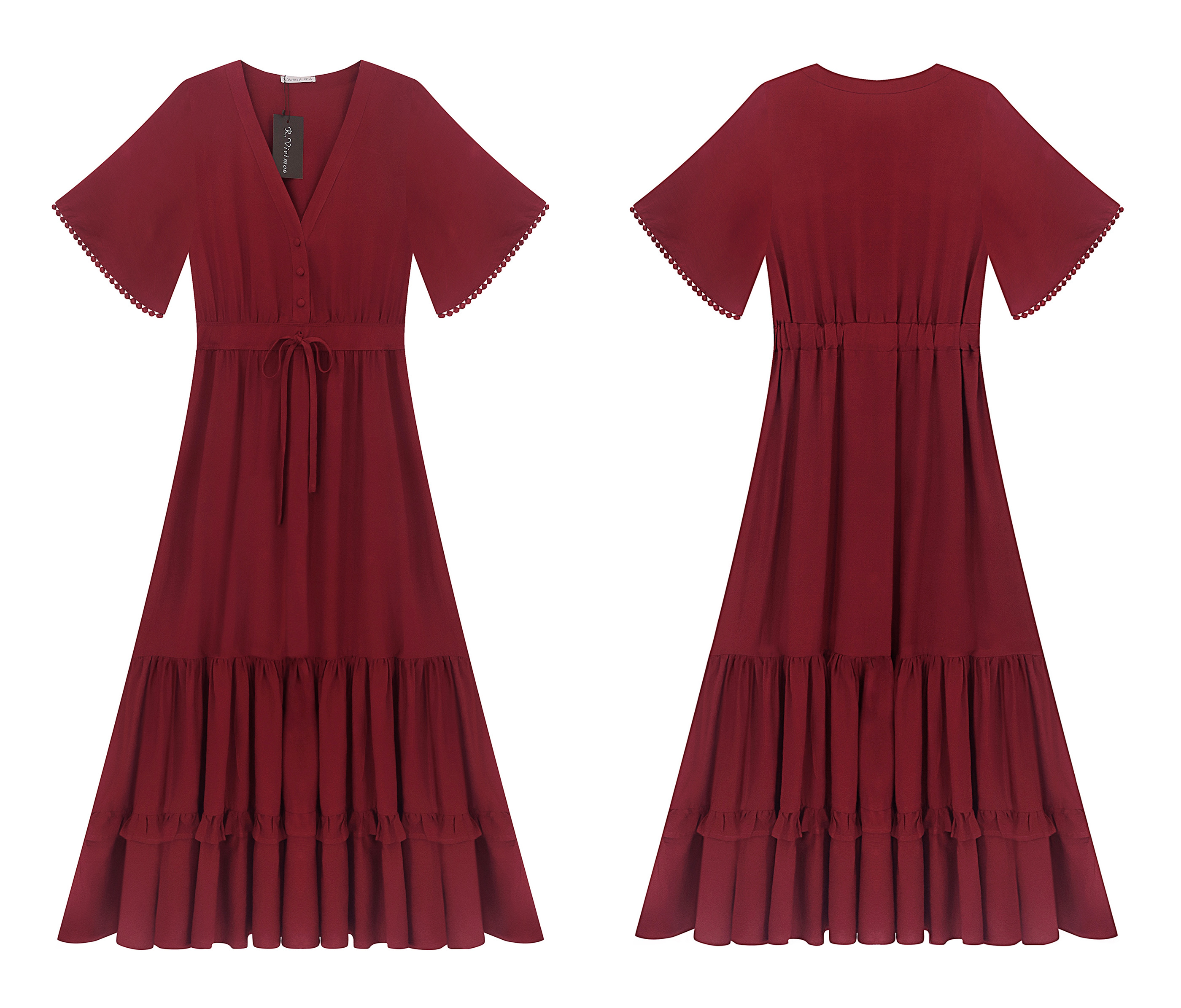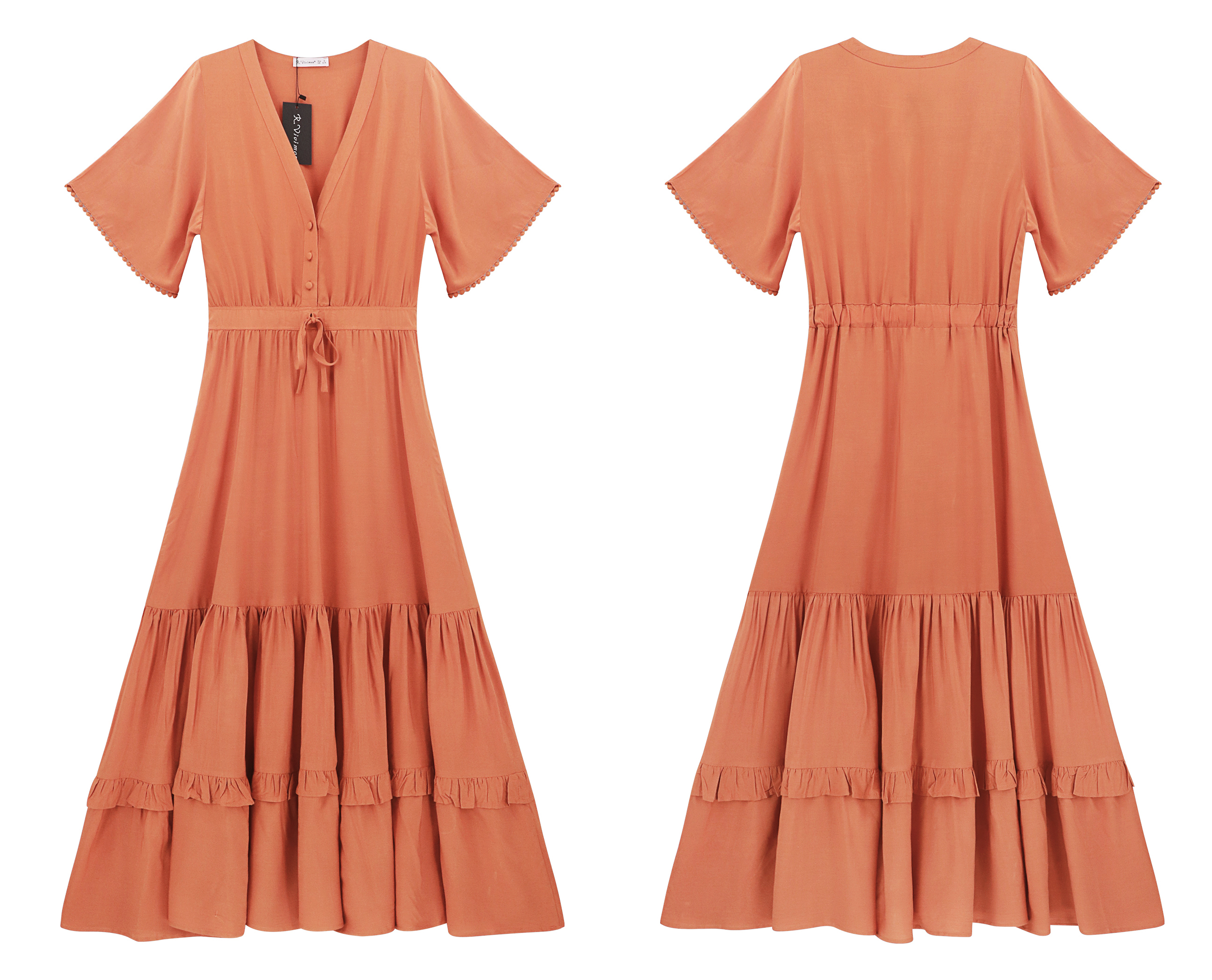 R.Vivimos Women's V Neck Tiered Ruffle Beach Vacation Dress
