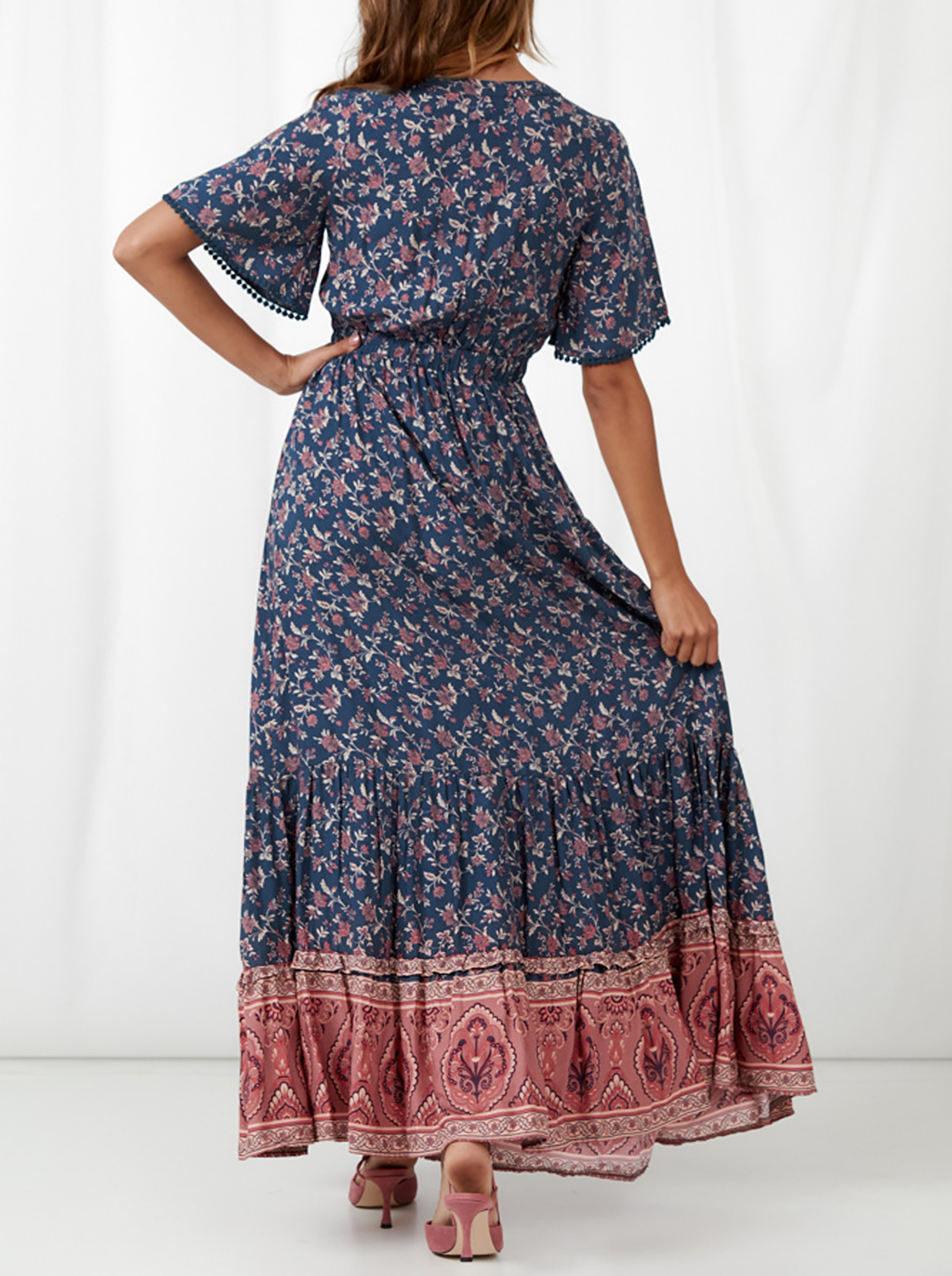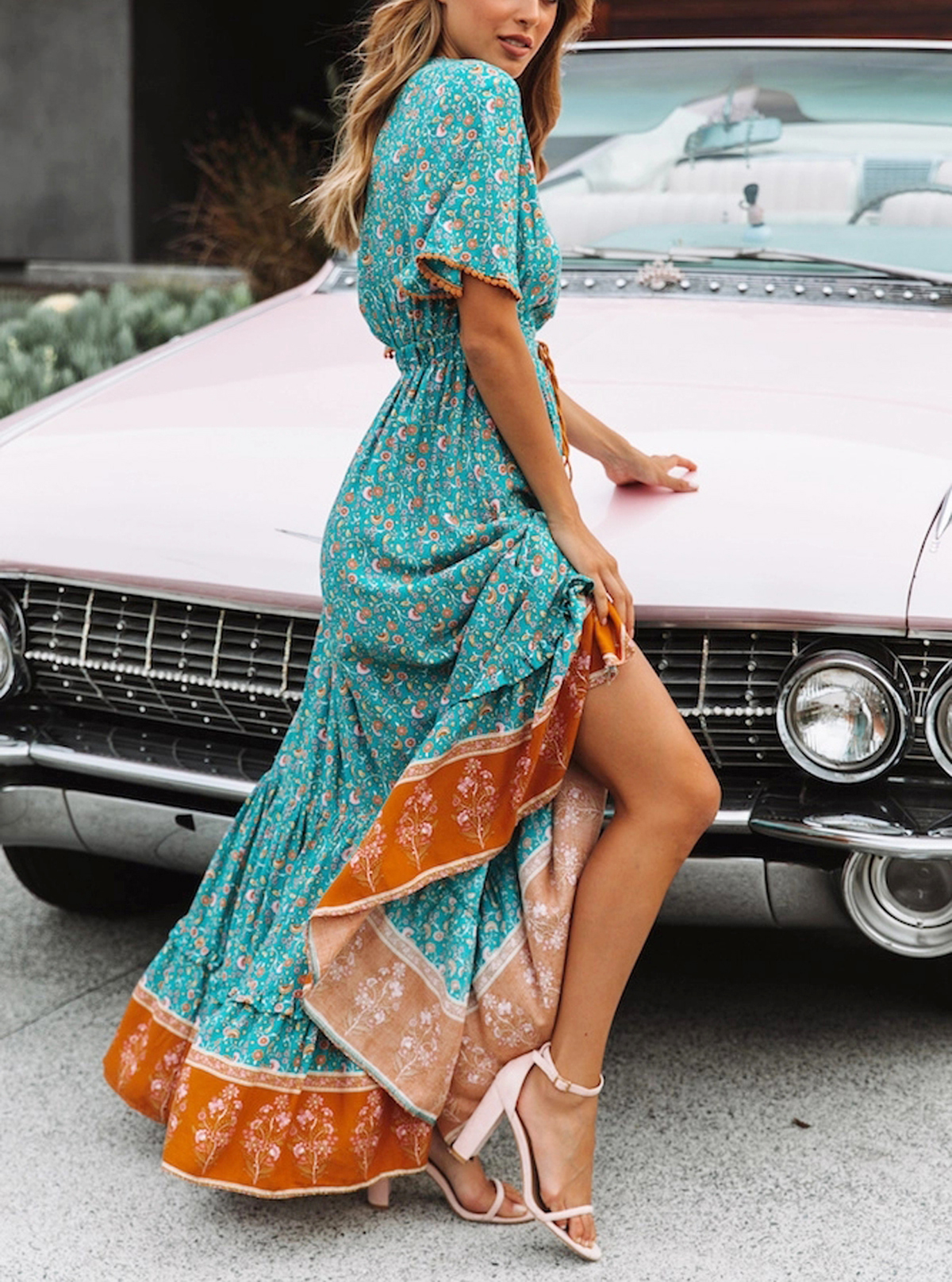 The fit and flare dress has solid color and floral print two versions to choose from. Can be worn casually or dress it up and go out to dinner or vacation. Can also be worn as a Maternity Dress. Suitable for Summer Casual, Beach, Vacation, Cruise, Photo Shoot, Baby Shower and Daily Wear, etc.