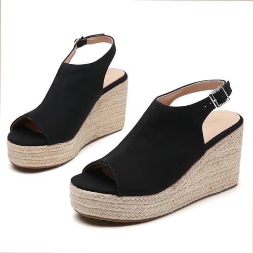 HOT ! Tilocow Espadrilles Wedges for Women Open Toe Ankle Strap Platform Dressy Casual Sandals Travel Slides