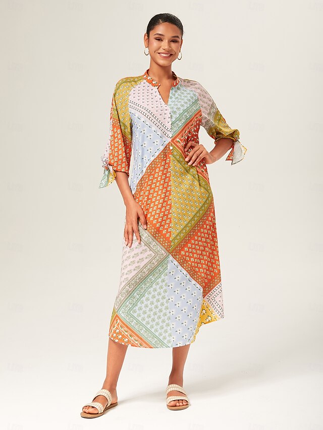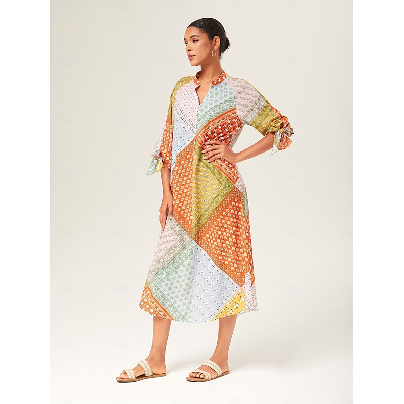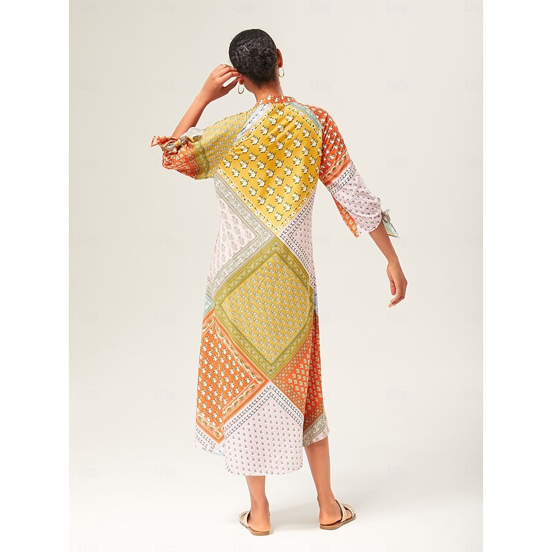Colorful Silk Scarf Printed Tie Sleeve Maxi Dress 7