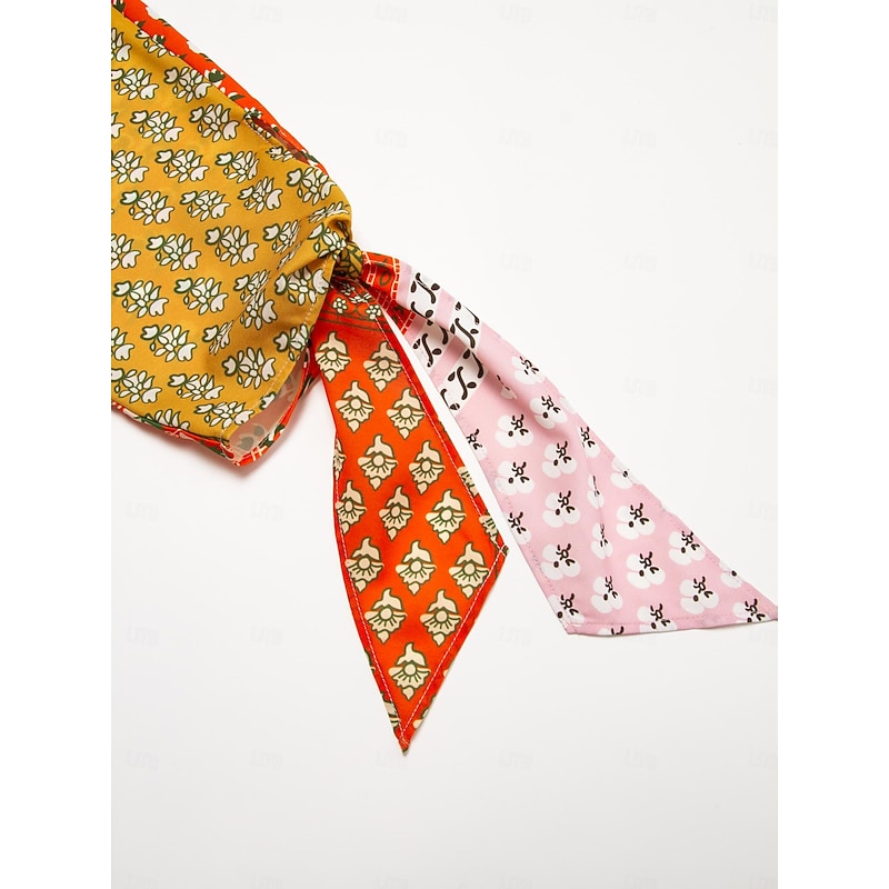 HOT ! Colorful Silk Scarf Printed Tie Sleeve Maxi Dress