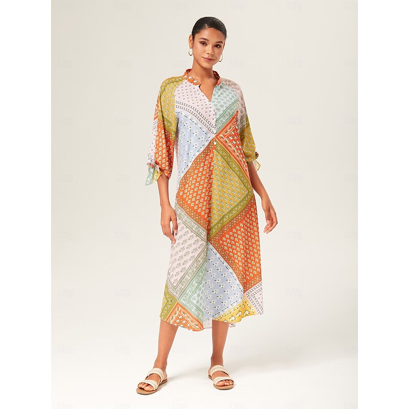 Highlights - Stay cool and stylish this summer with our Women's Maxi Dress - Made from high-quality polyester fabric - Features a beautiful print design - Boasts a flattering high neckline - Perfect for any summer outing or event