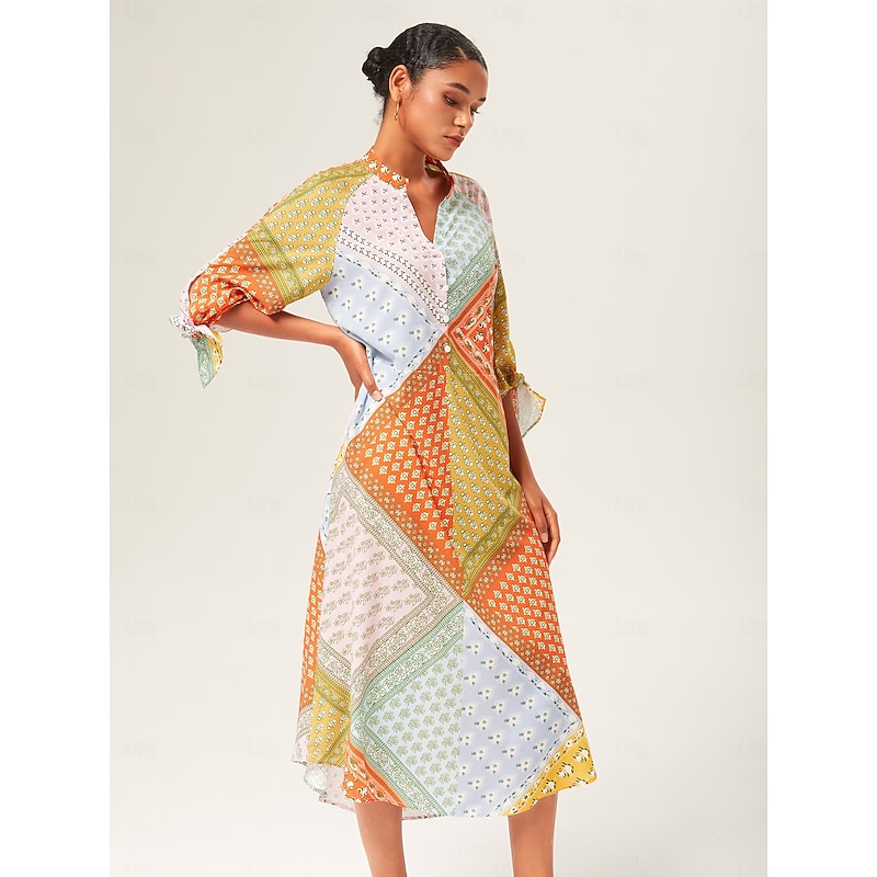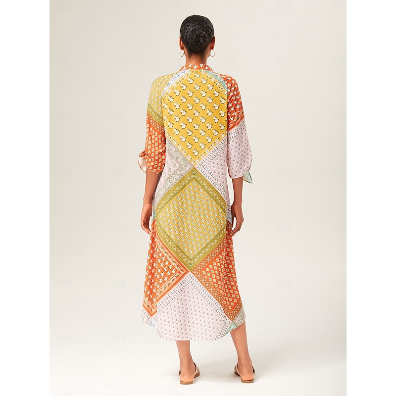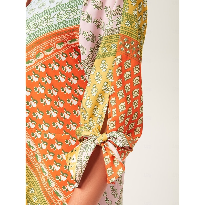 More information about Colorful Silk Scarf Printed Tie Sleeve Maxi Dress