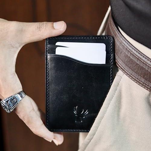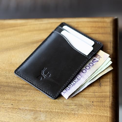 HOT ! AR-RAFI Slim Wallet - Minimalist Front Pocket Leather Card Holder for Men & Women, Premium Top-Grain Leather, Ultra Slim & Lightweight, Durable Design, Holds Multiple Cards (Jet Black)