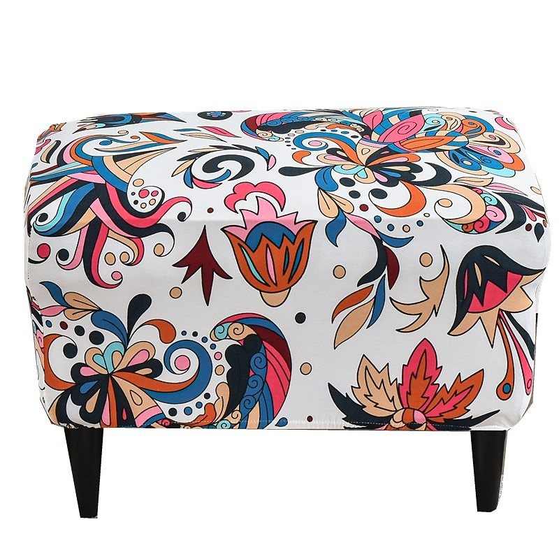 Floral Printed Stretch Ottoman Cover Spandex Elastic Stretch Rectangle Folding Storage Covers Removable Footstool Protect Footrest Covers 1