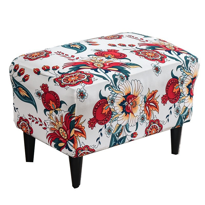 Floral Printed Stretch Ottoman Cover Spandex Elastic Stretch Rectangle Folding Storage Covers Removable Footstool Protect Footrest Covers 11