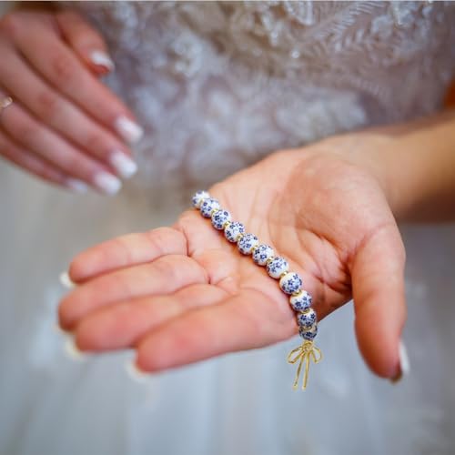 • 【Bow Pendant Bracelet】 This handmade beaded bracelet combines elegance and agility ingeniously - ceramic beads with floral patterns, 14K gold-plated spacer beads, and 18K gold-plated bow pendants embellished with delicate crystals, all strung on a tough double-strand elastic rope, with both classic beauty and modern charm.