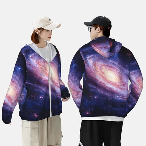 • UV Protection: Our Blue galaxy long sleeve sun shirts features cutting-edge UPF 50+ technology, effectively blocking UV rays to ensure robust sun protection during your outdoor adventures. Designed with a hood to protect the neck, and other sun-exposed areas. Ideal for extended outdoor activities