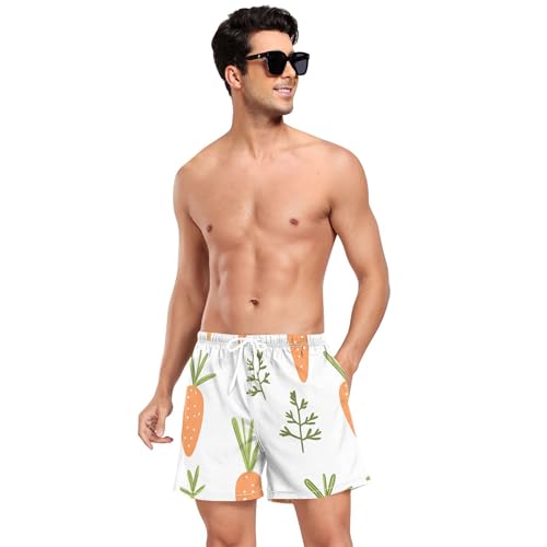 HOT ! xigua Cute Carrots Mens Swim Trunks with Liner, 5 inch Quick Dry Mens Boardshorts for Beach