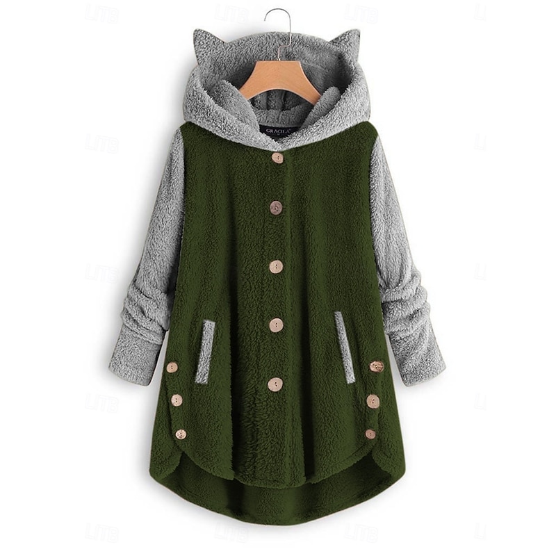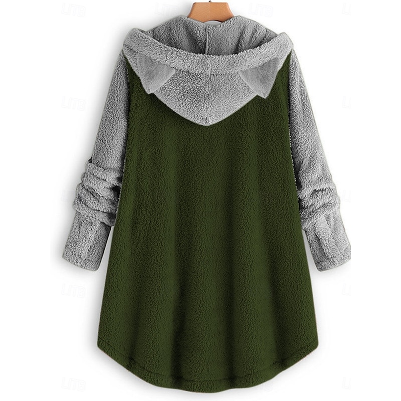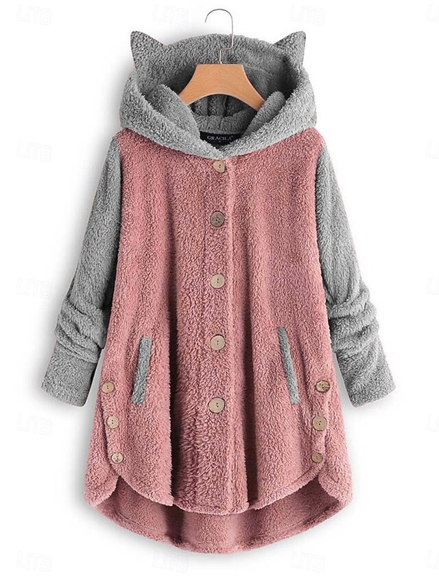 More information about Women's Sherpa Jacket Comfortable Breathable Pocket Buttons Casual Plain Vacation Street Casual Daily Wear Single Breasted Long Hooded Loose Fit Long Sleeve Outerwear Black Pink Wine Spring Fall