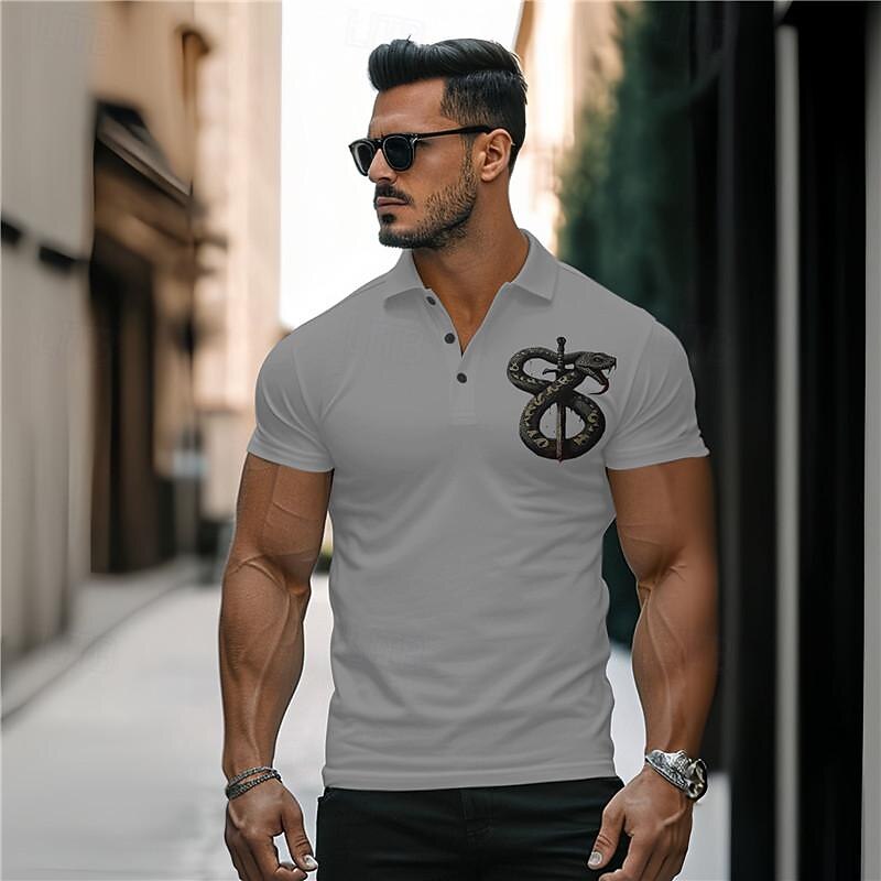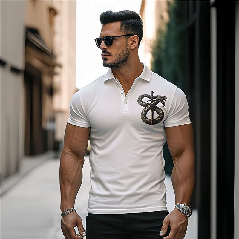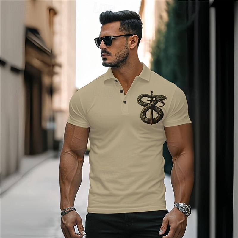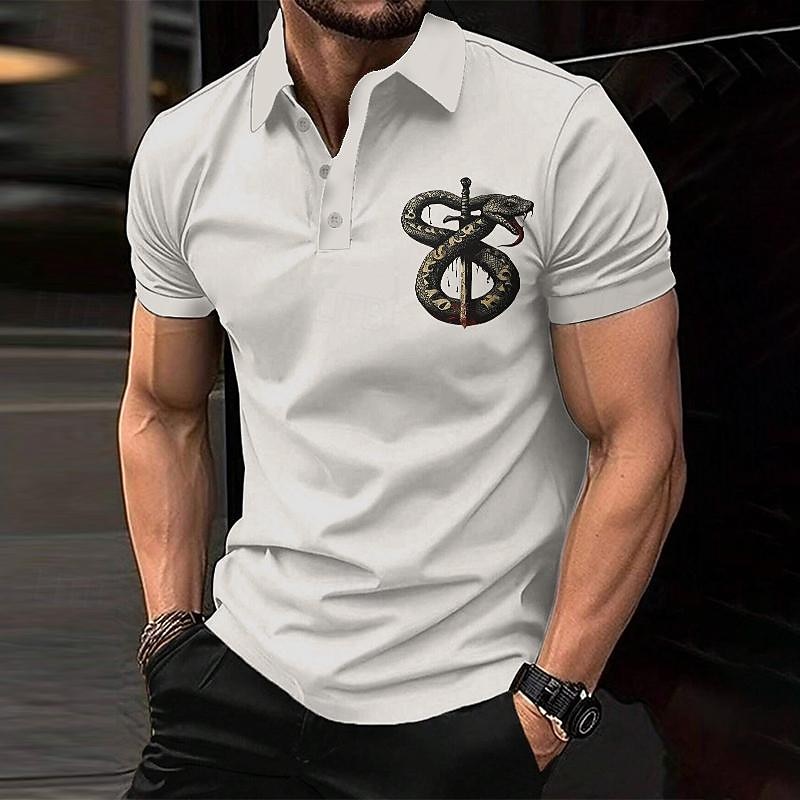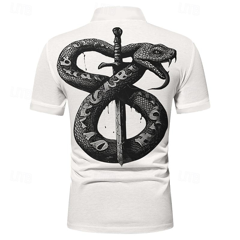 More information about Men's Snake Polo Shirts Golf Shirt Short Sleeve Polo Shirts Collared Shirts Casual Funny Streetwear Vacation Wear Party Outfits Buttons 3D Print Summer Spring Fall Black White Khaki